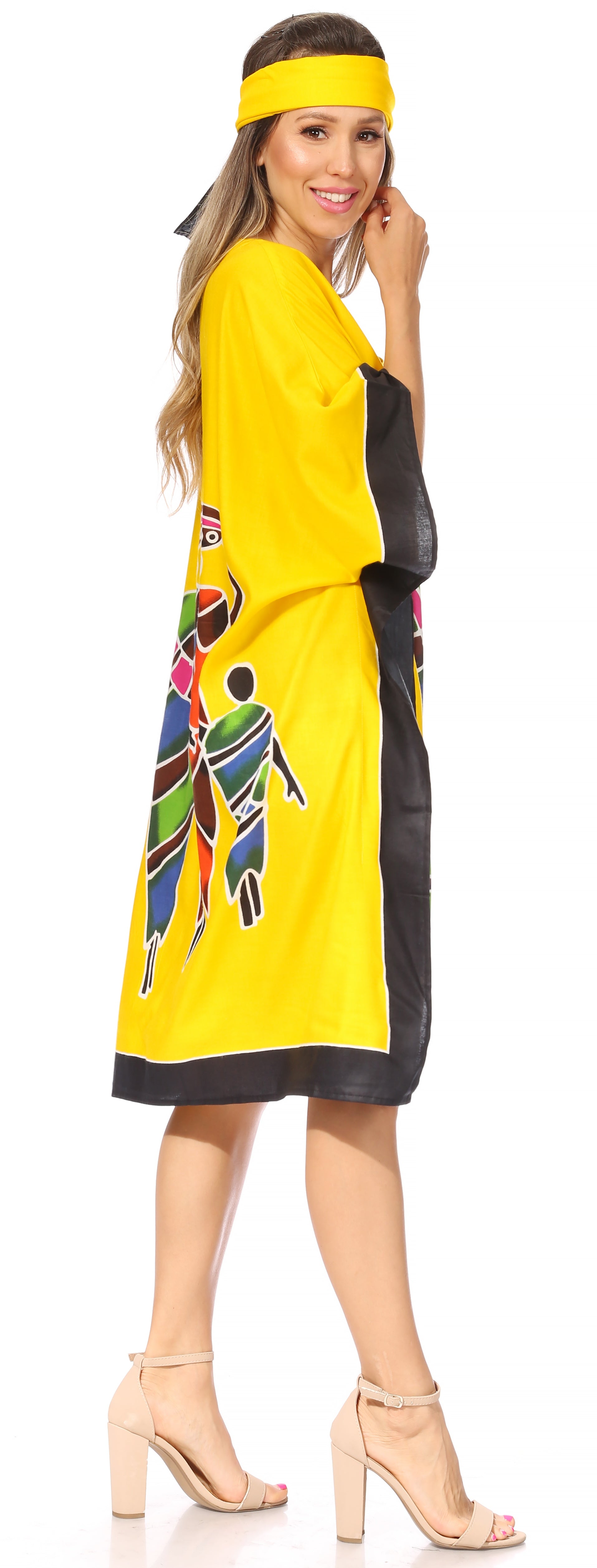 • MAXI/BOHO/SLEEVELES/CASUAL DRESS: Trina, the perfect loose caftan poncho dress to wear in warm weather. This lovely garment features a pull over closure, loose relax bodice, short sleeves, African print, comes with matching scarf. Made with super light material. Look and feel like a goddess in any setting while wearing this lovely flattering dress! It's generous relax fit makes it suitable to wear it year round.