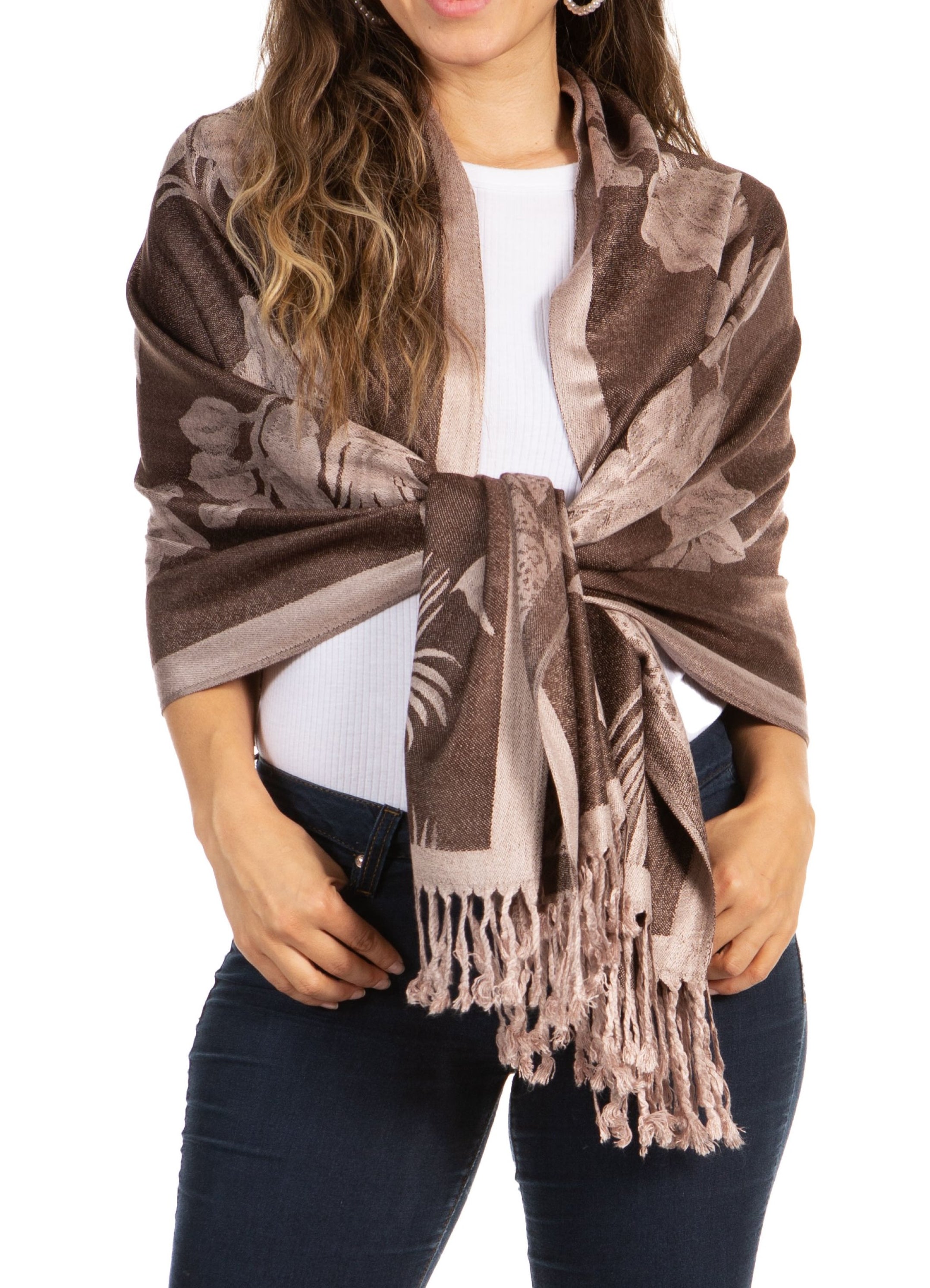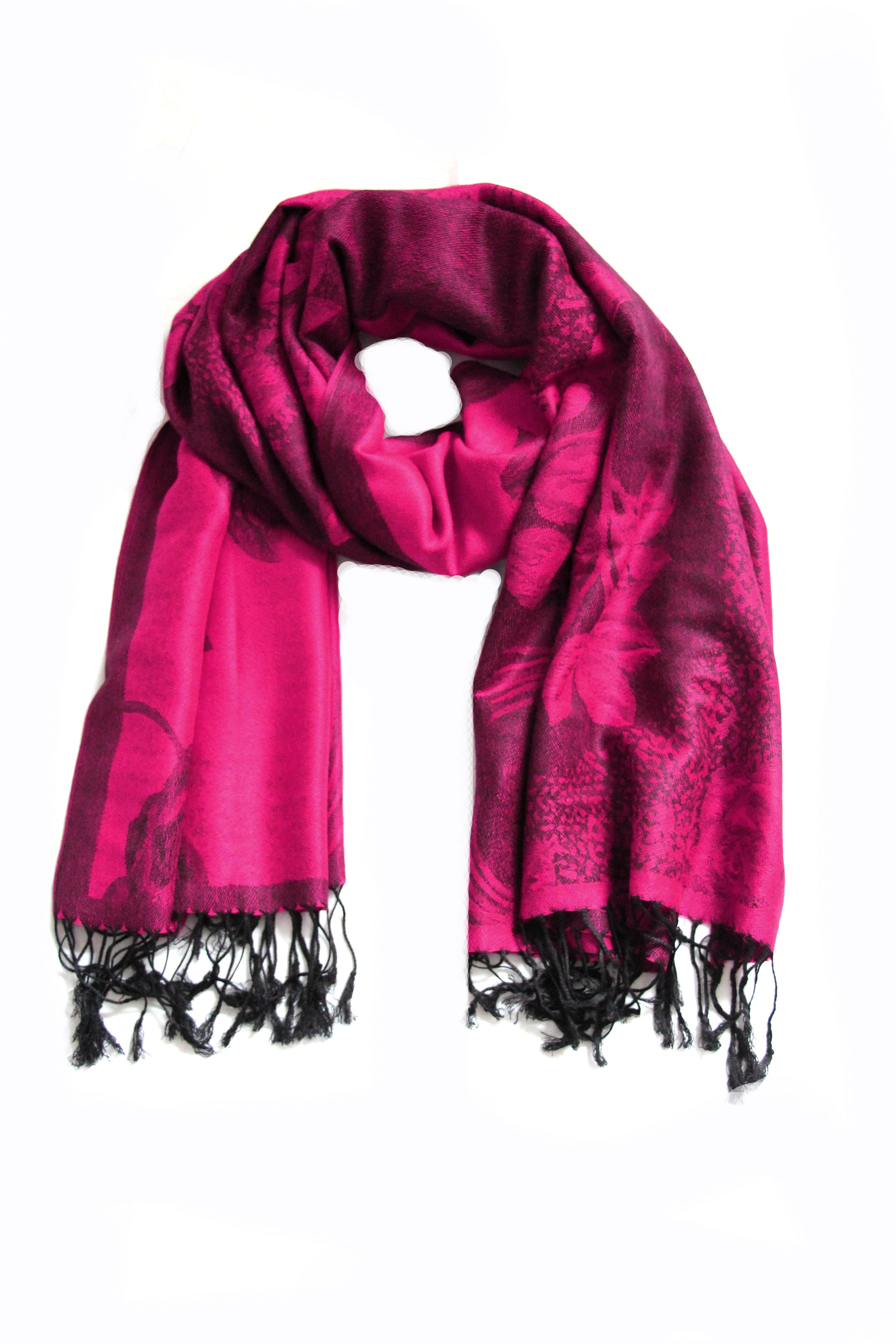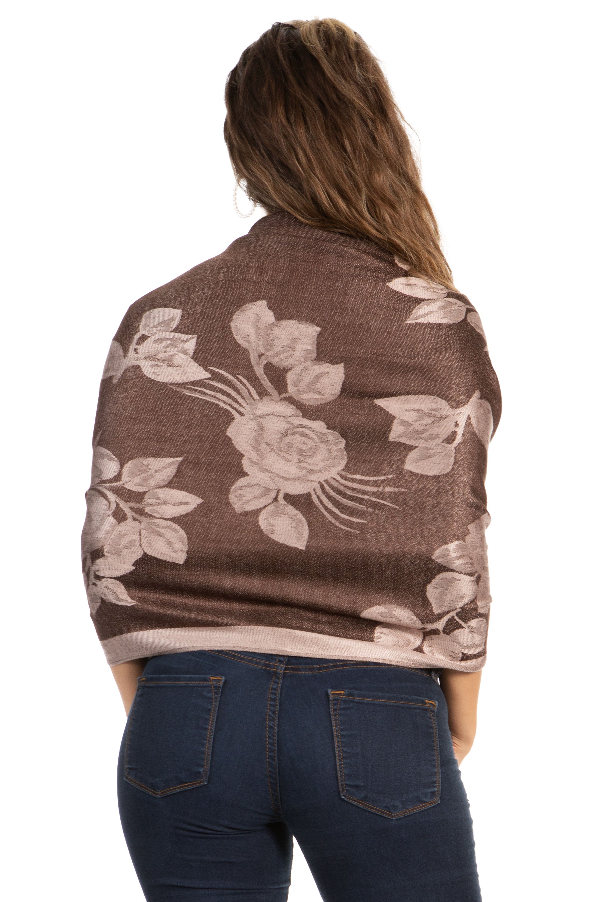 Cozy, soft and lightweight pashmina feel scarves are a must have year round accessory. Features a two tone reversible rose design and fringe ends. Lightweight fabric makes them perfect for indoors, outdoors and traveling.