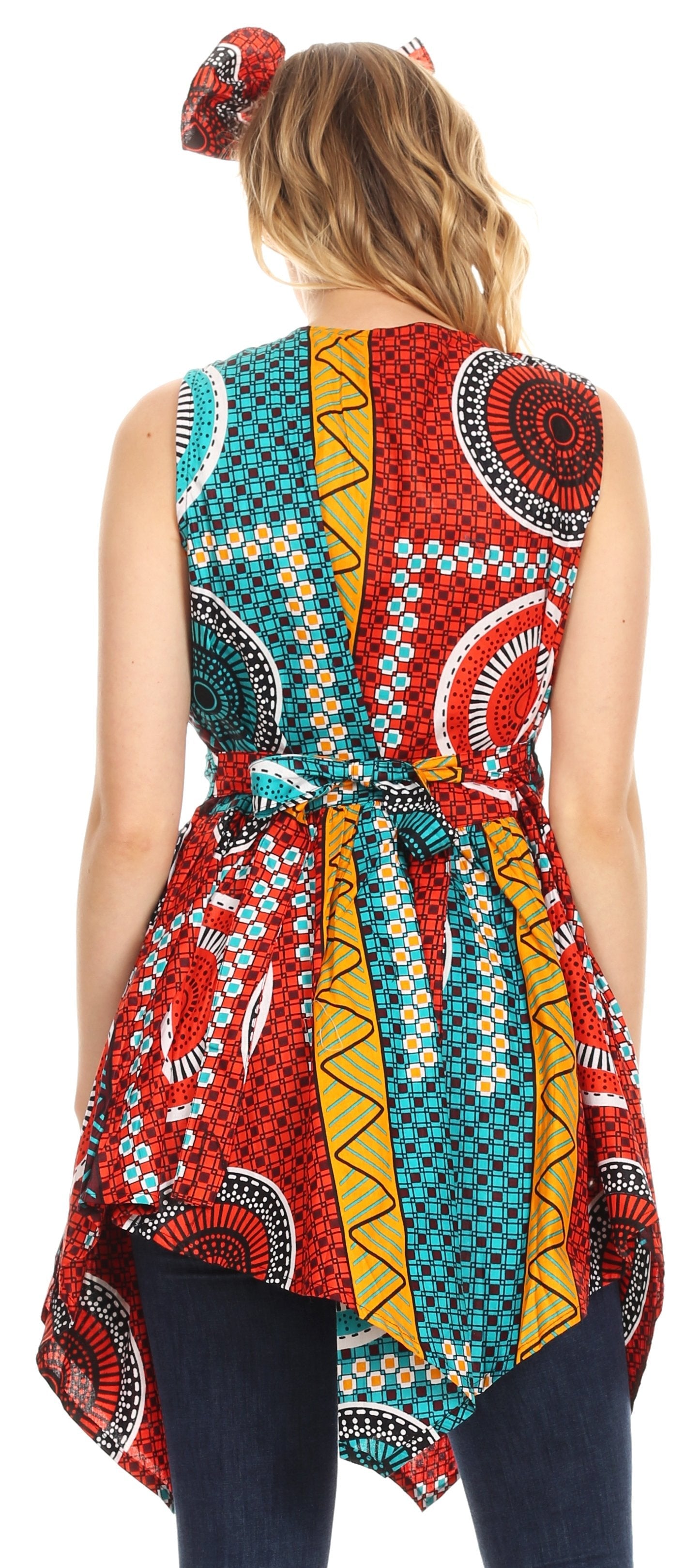 Sakkas Vale Womens African Ankara Sleeveless Short Cocktail Wrap Dress with Pocket