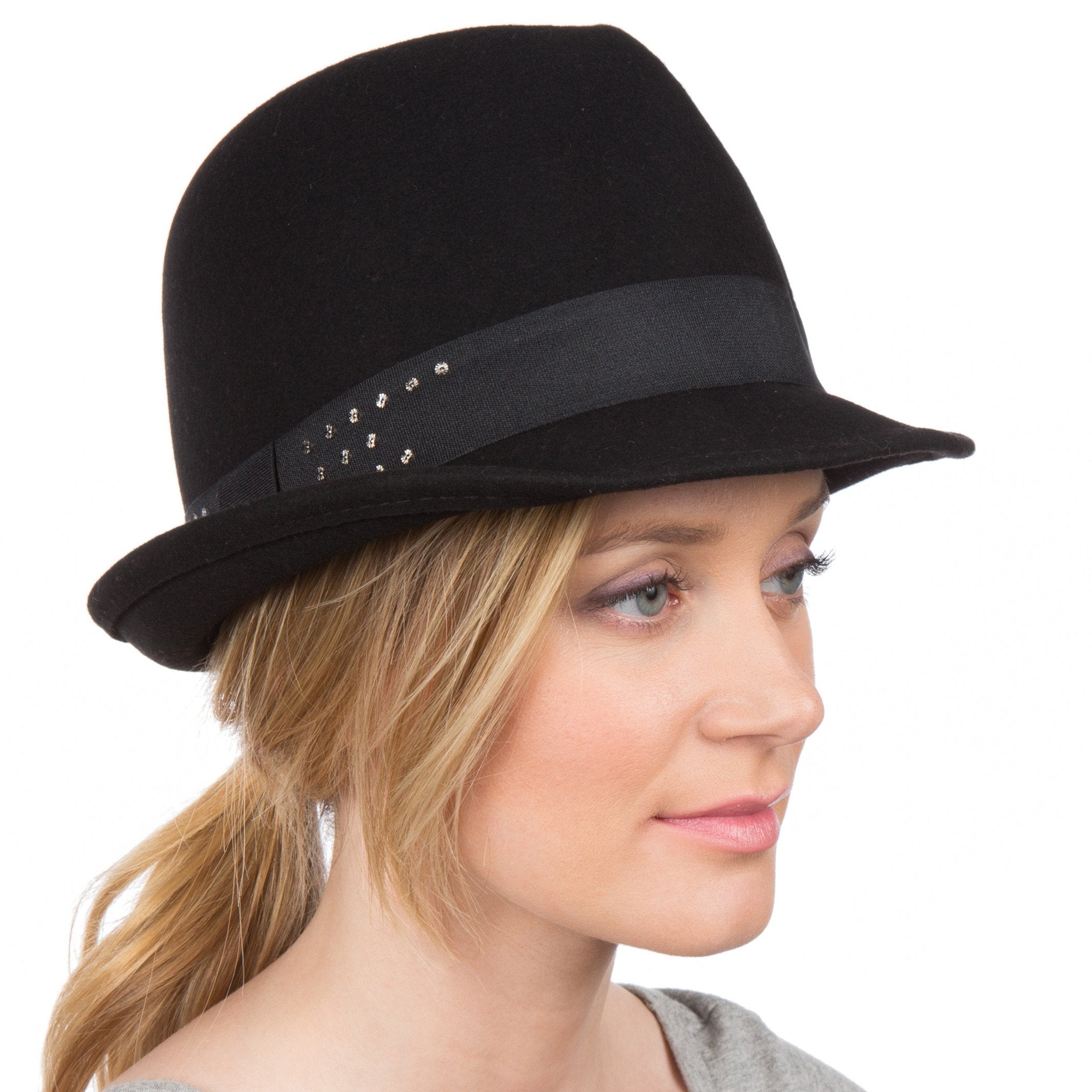 • Features modern narrow brim, accent band and satin adjustable elastic inner crown.