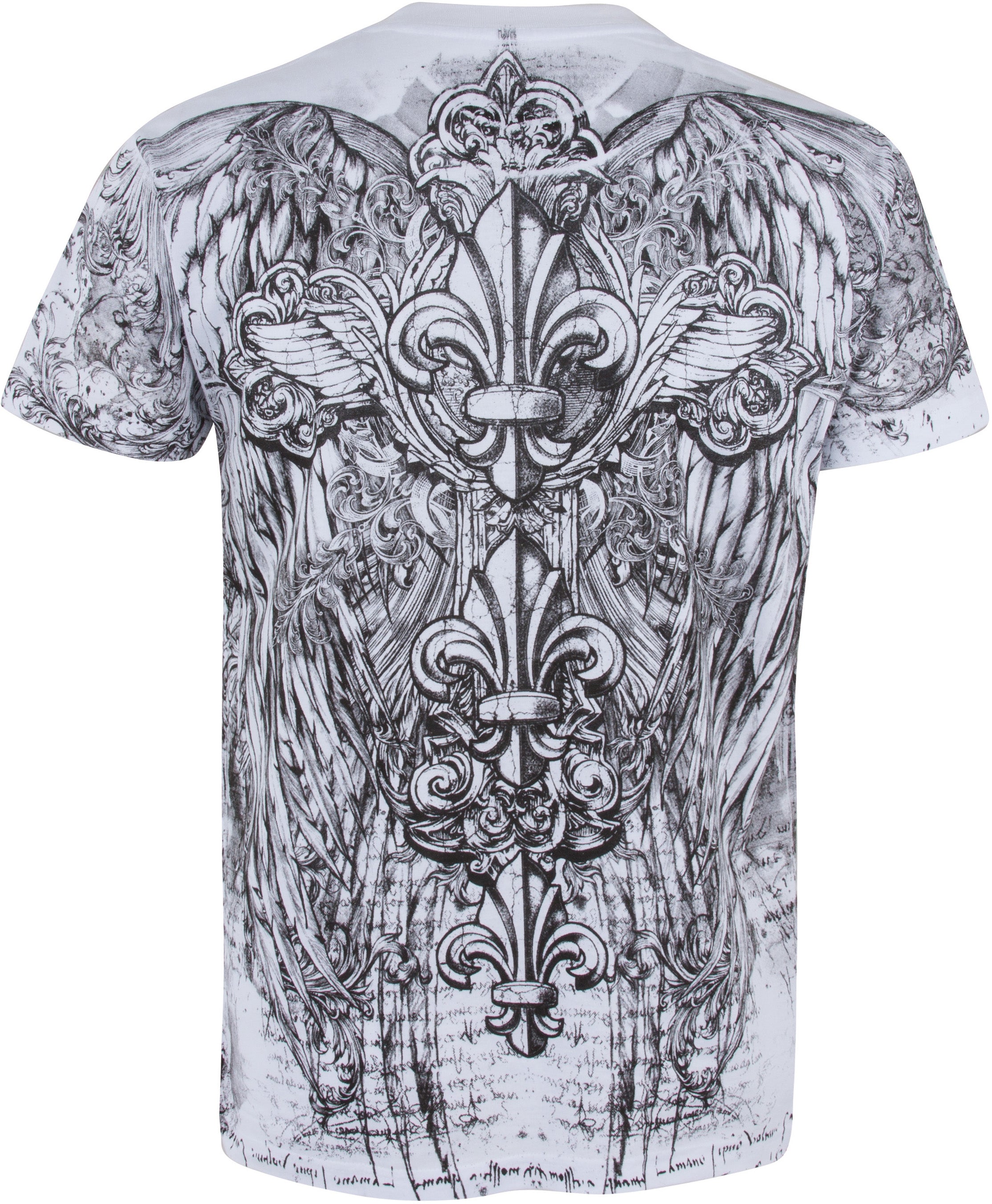 Sakkas Vines and Fleur De Lis Metallic Silver Embossed Cotton Mens T-Shirt