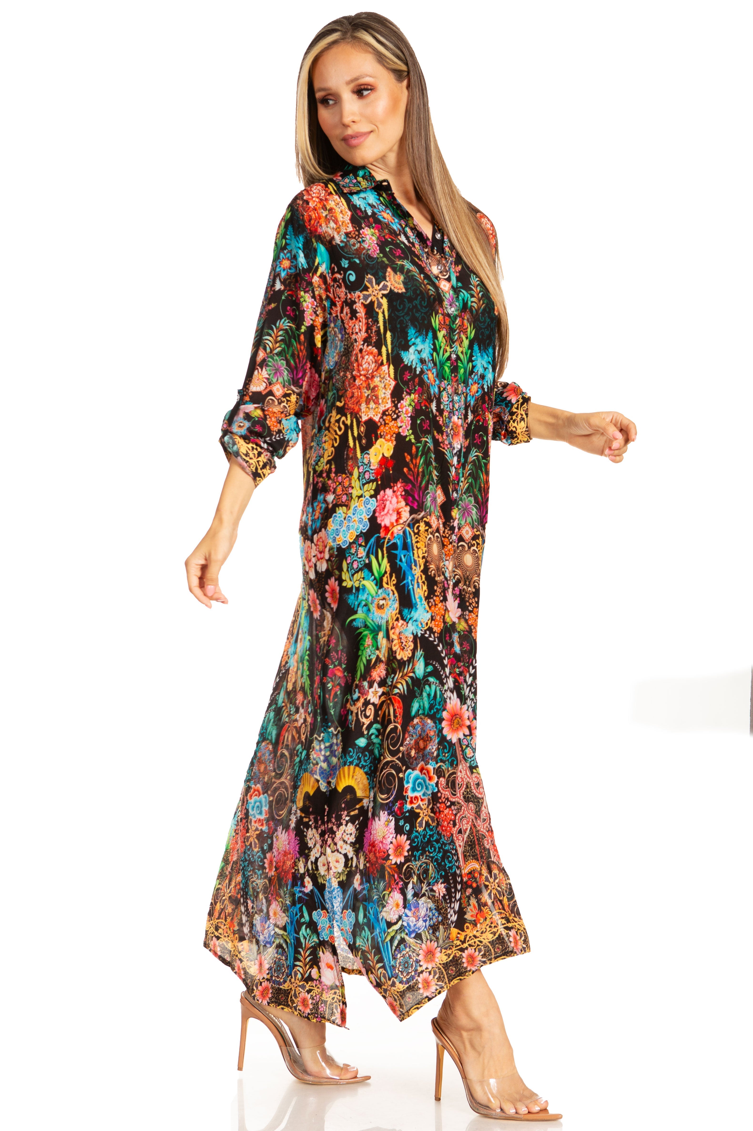 Sakkas Womens Long Sleeves Button Down Spring/Summer Maxi Shirt dress/Beachwear