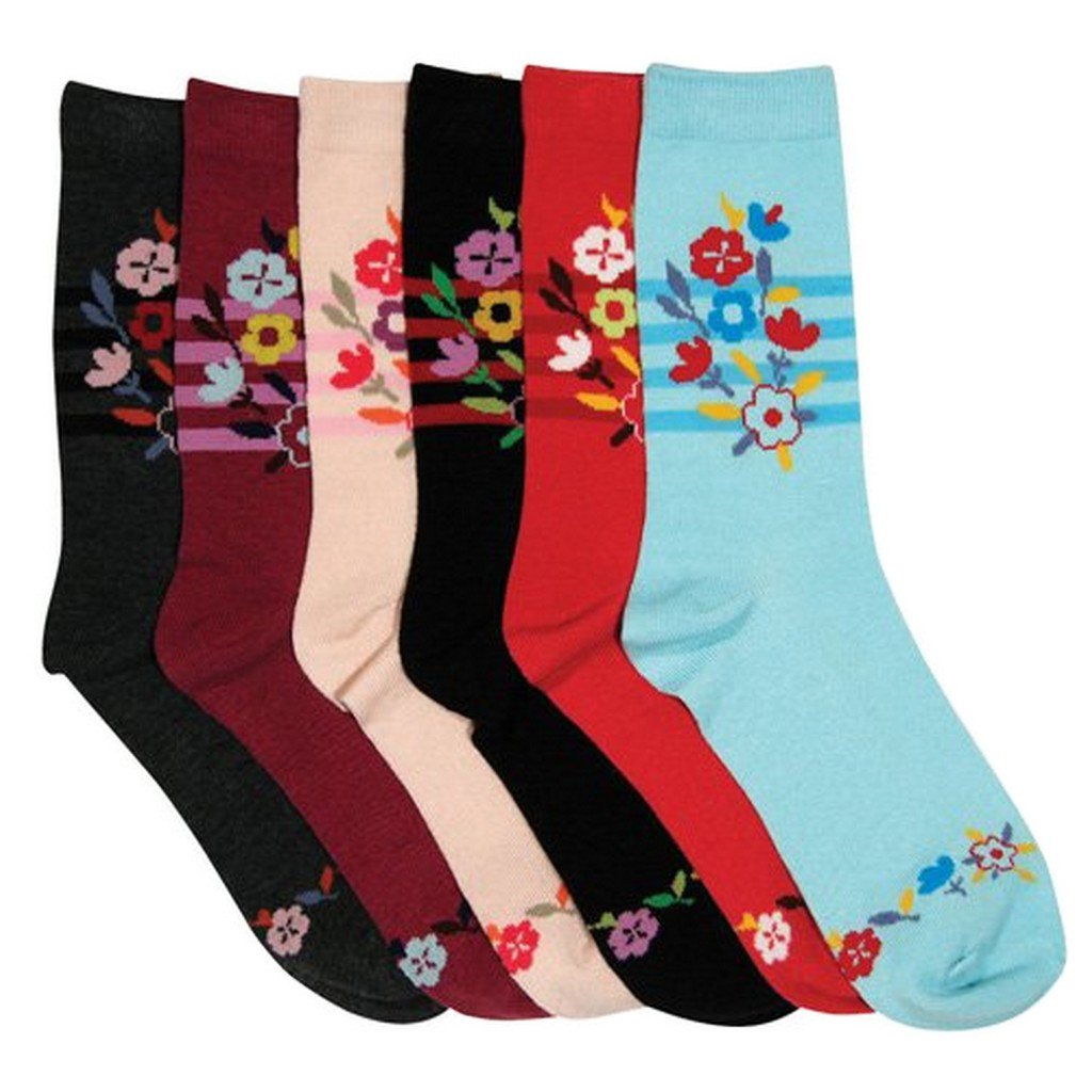 Sakkas Women's Poly Blend Soft and Stretchy Crew Pattern Socks Assorted 6-pack