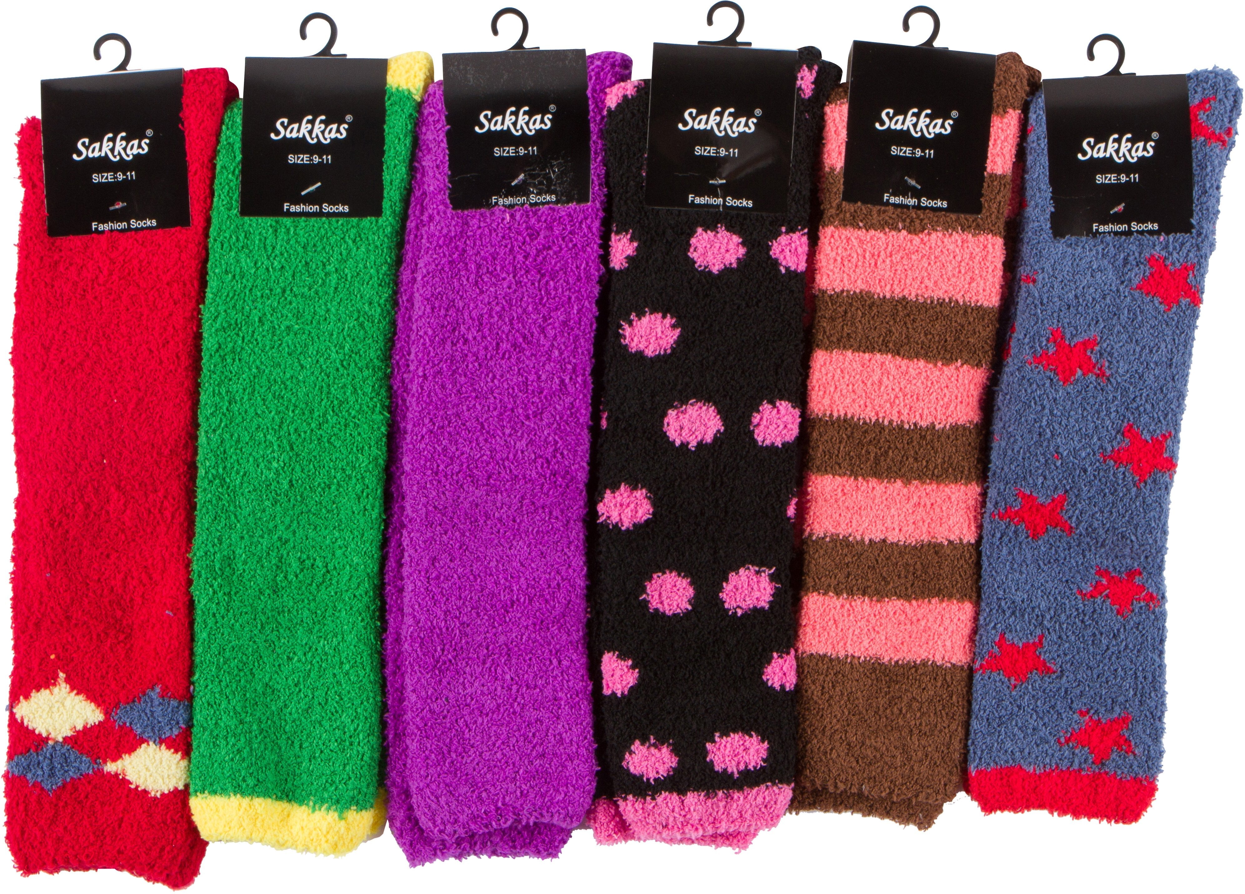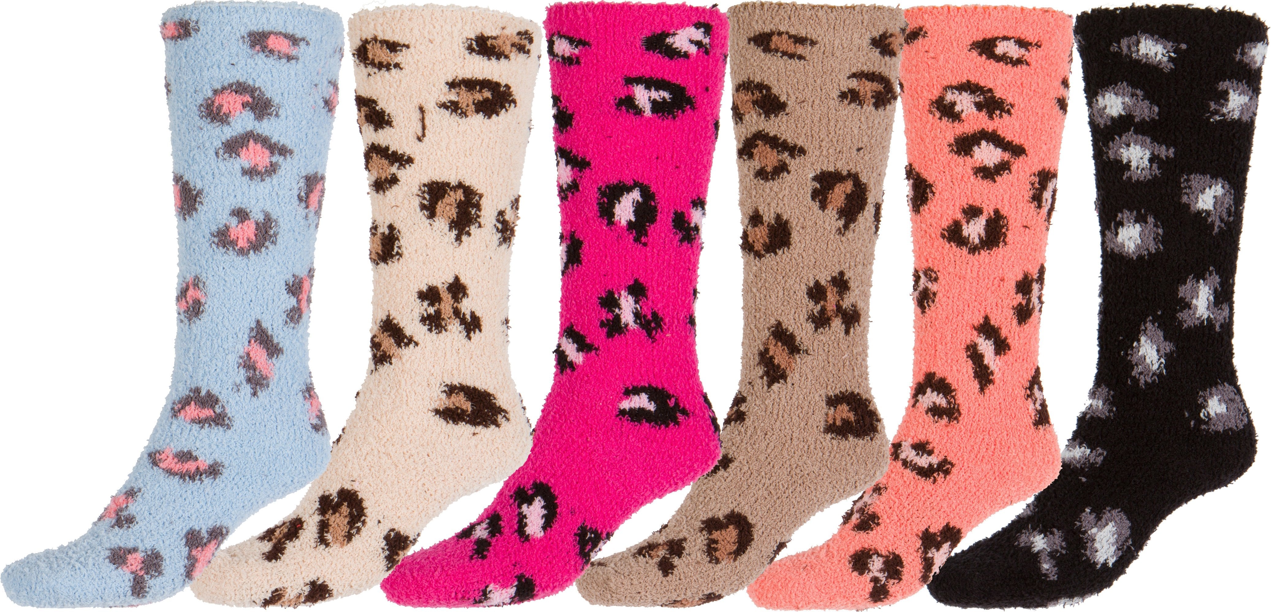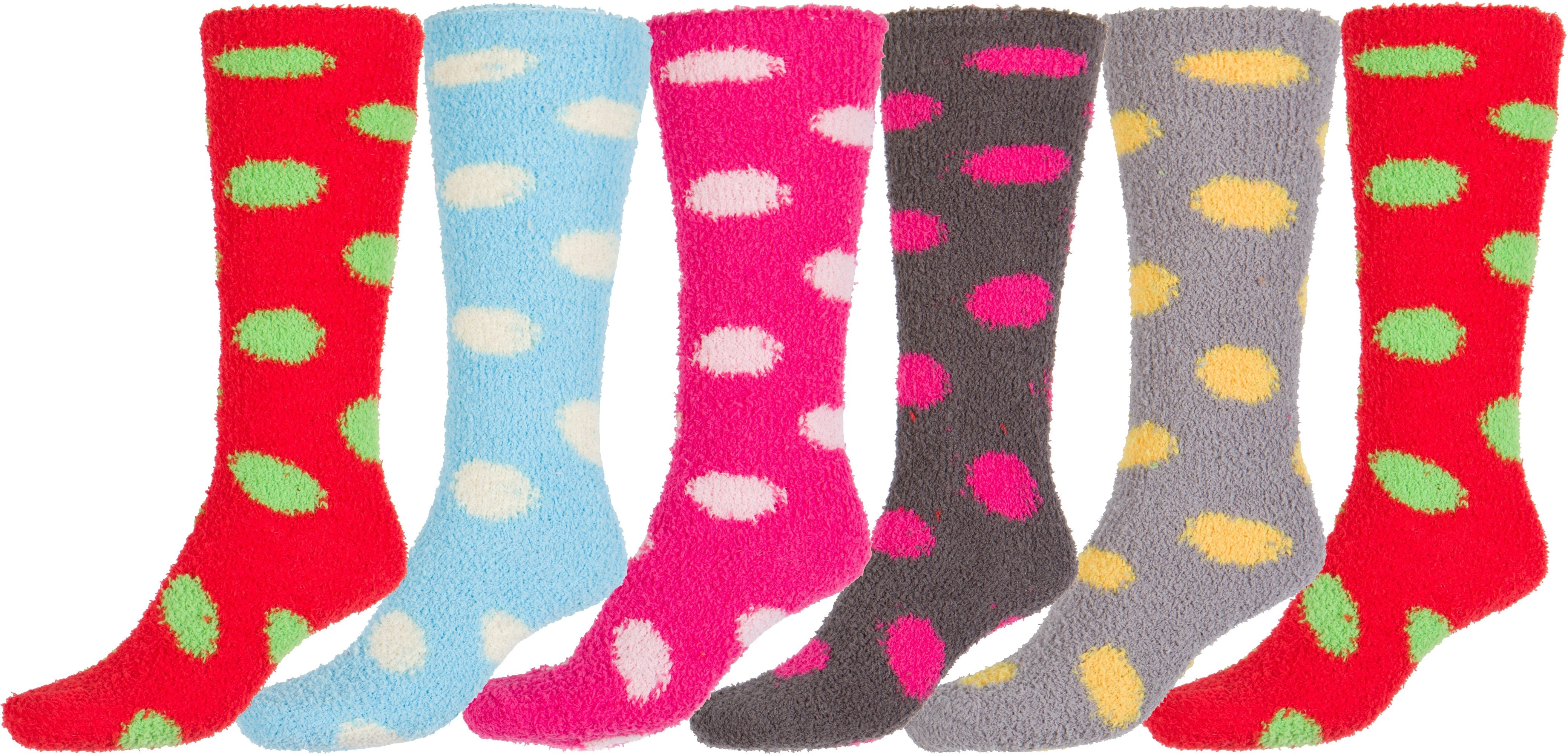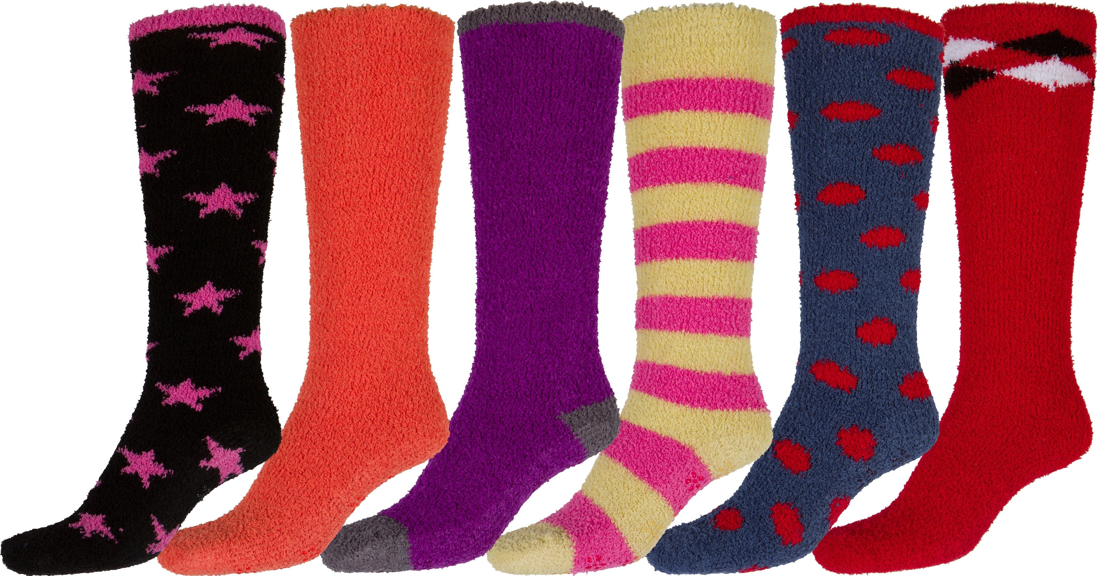 • Socks come in a knee high length. Material is soft, warm, and fuzzy. Value pack includes six pairs of socks in assorted design and colors