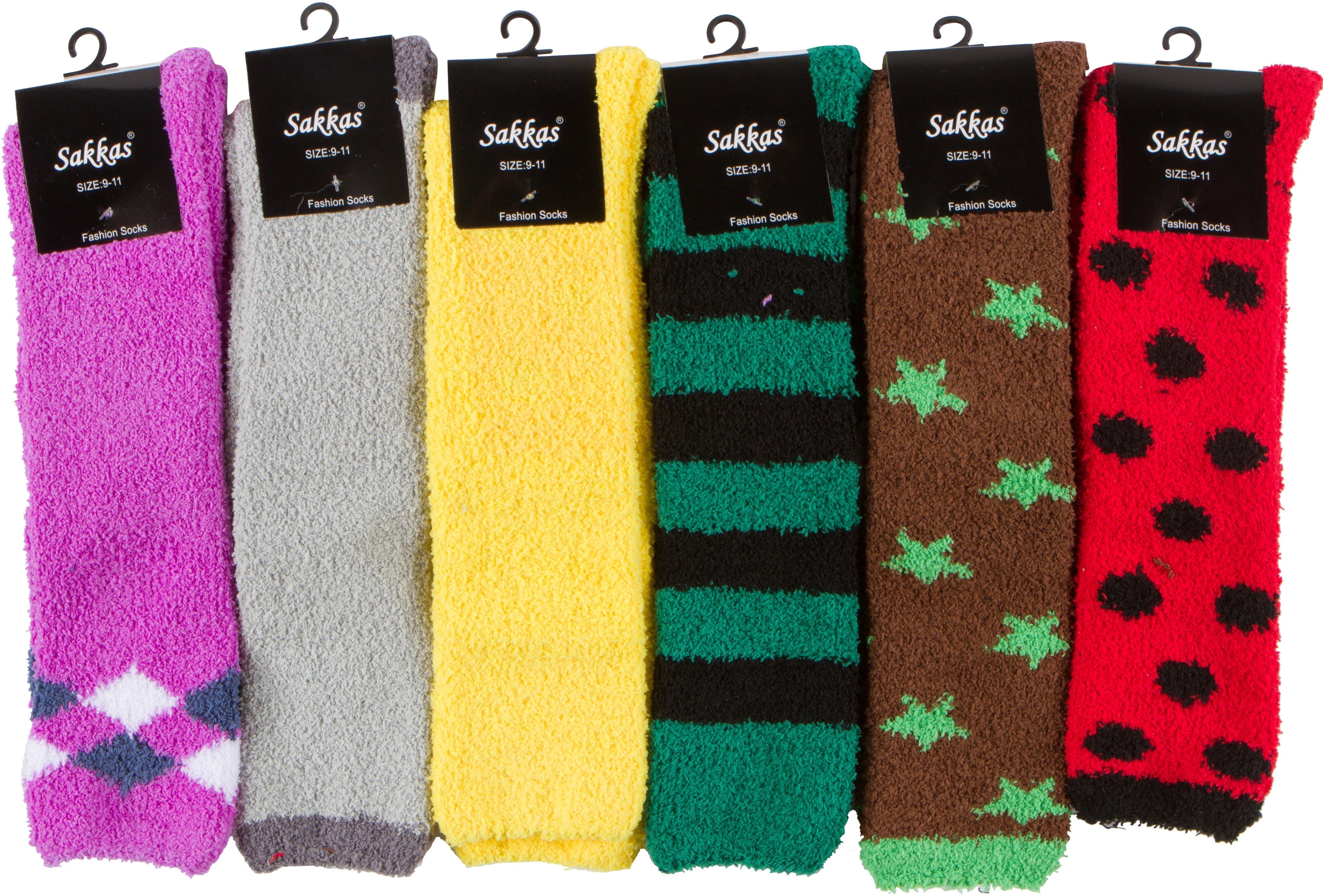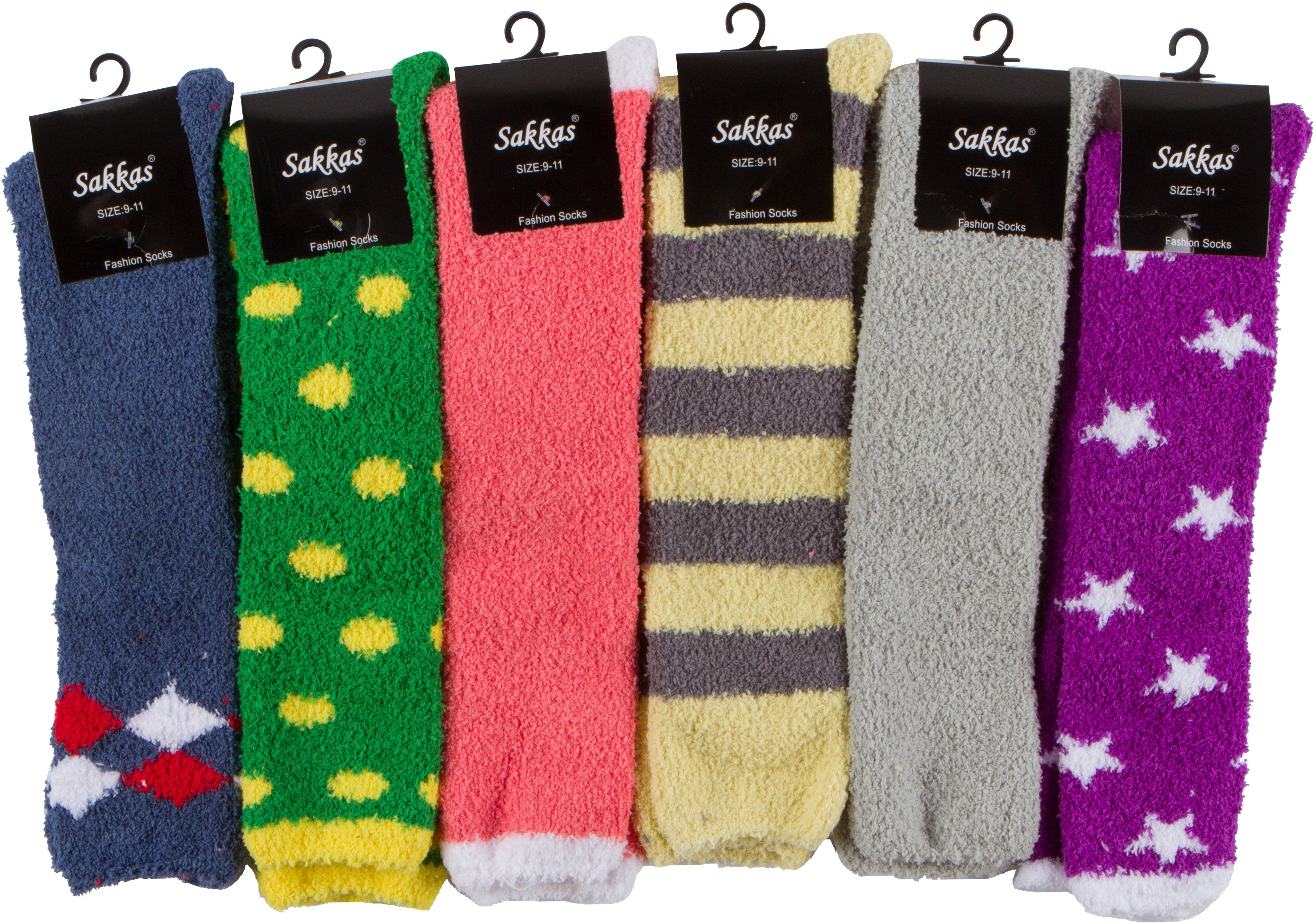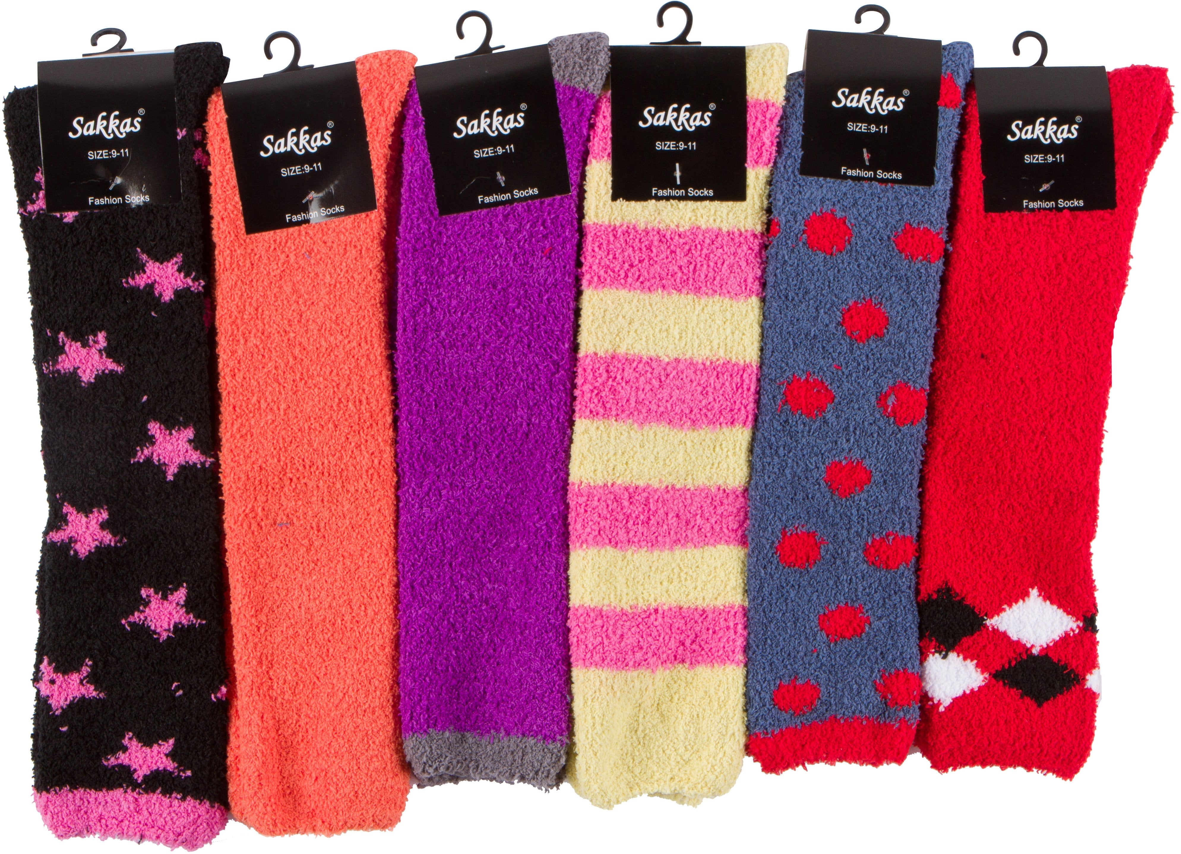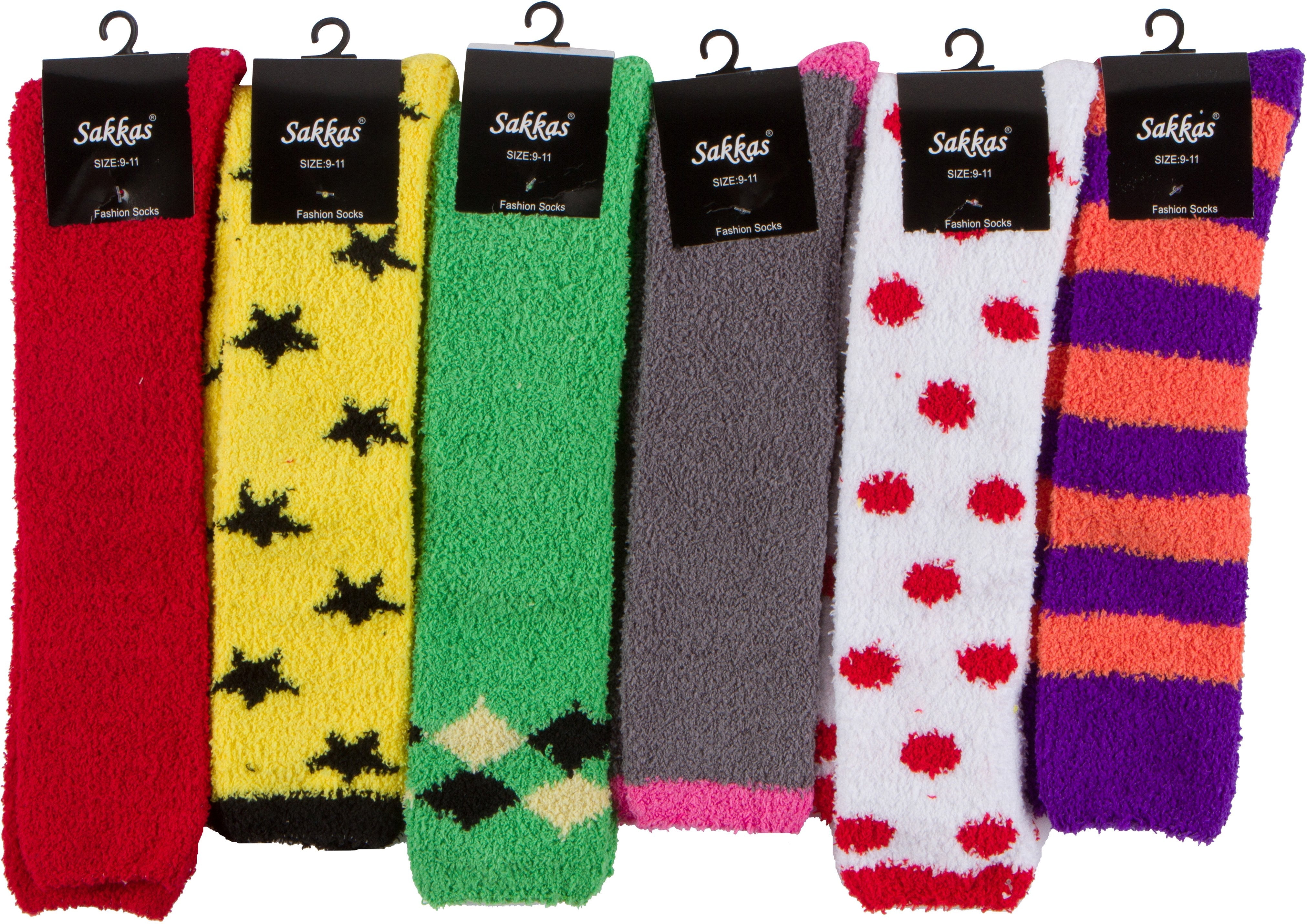 • Socks come in a knee high length. Material is soft, warm, and fuzzy. Value pack includes six pairs of socks in assorted design and colors
