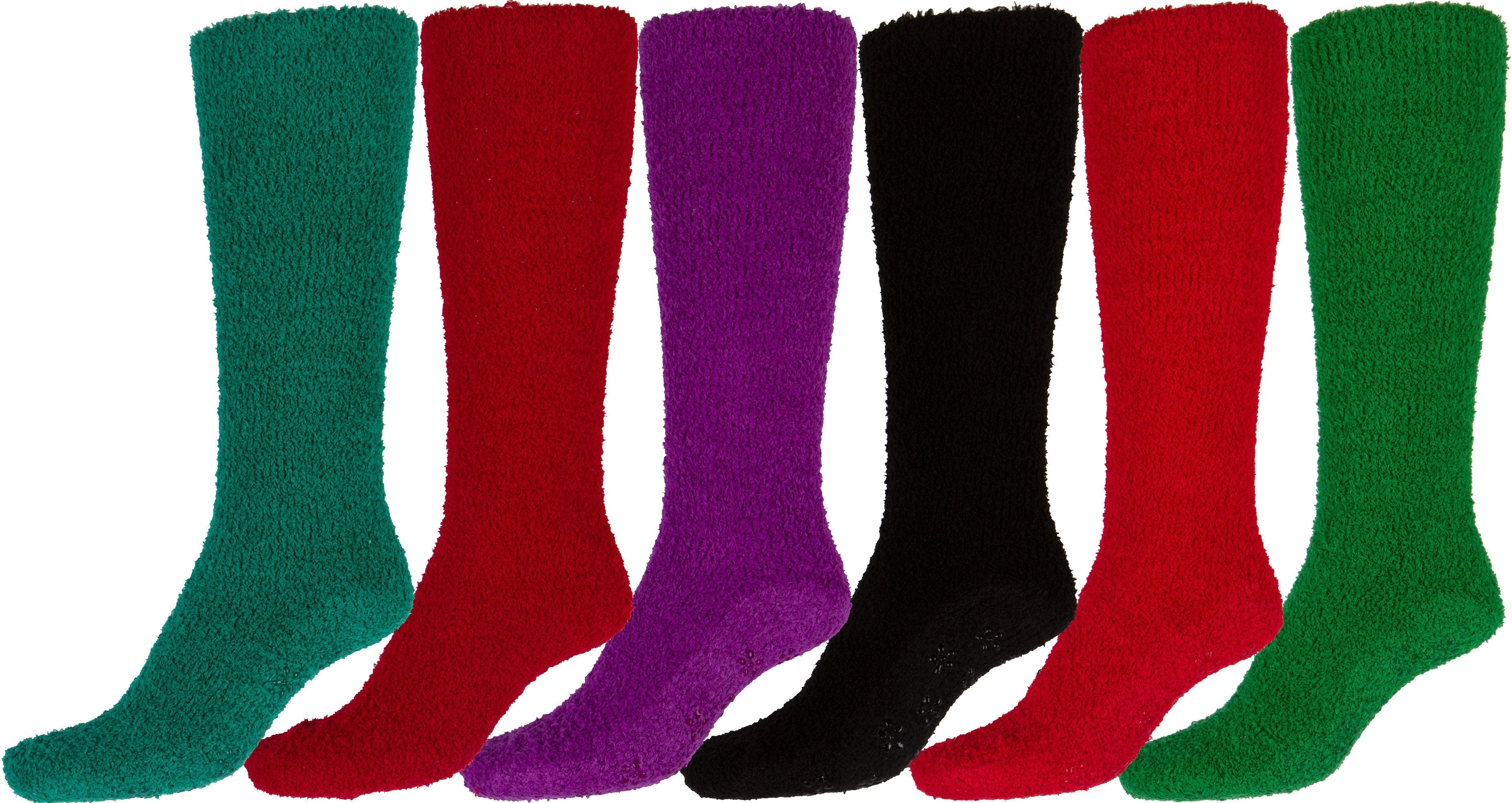 Sakkas Womens Super Soft Anti-Slip Fuzzy Knee High Socks Value Assorted 6-Pack