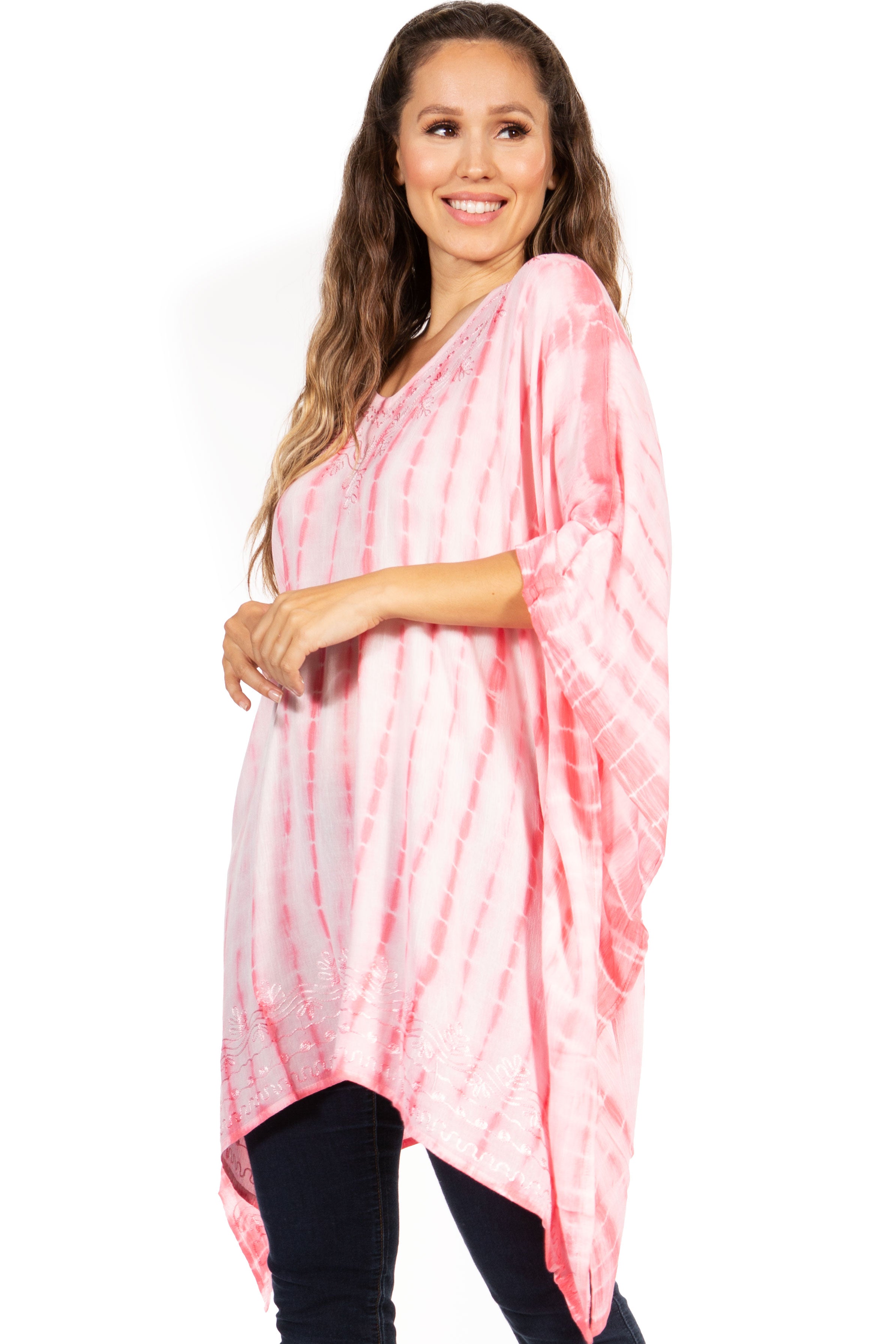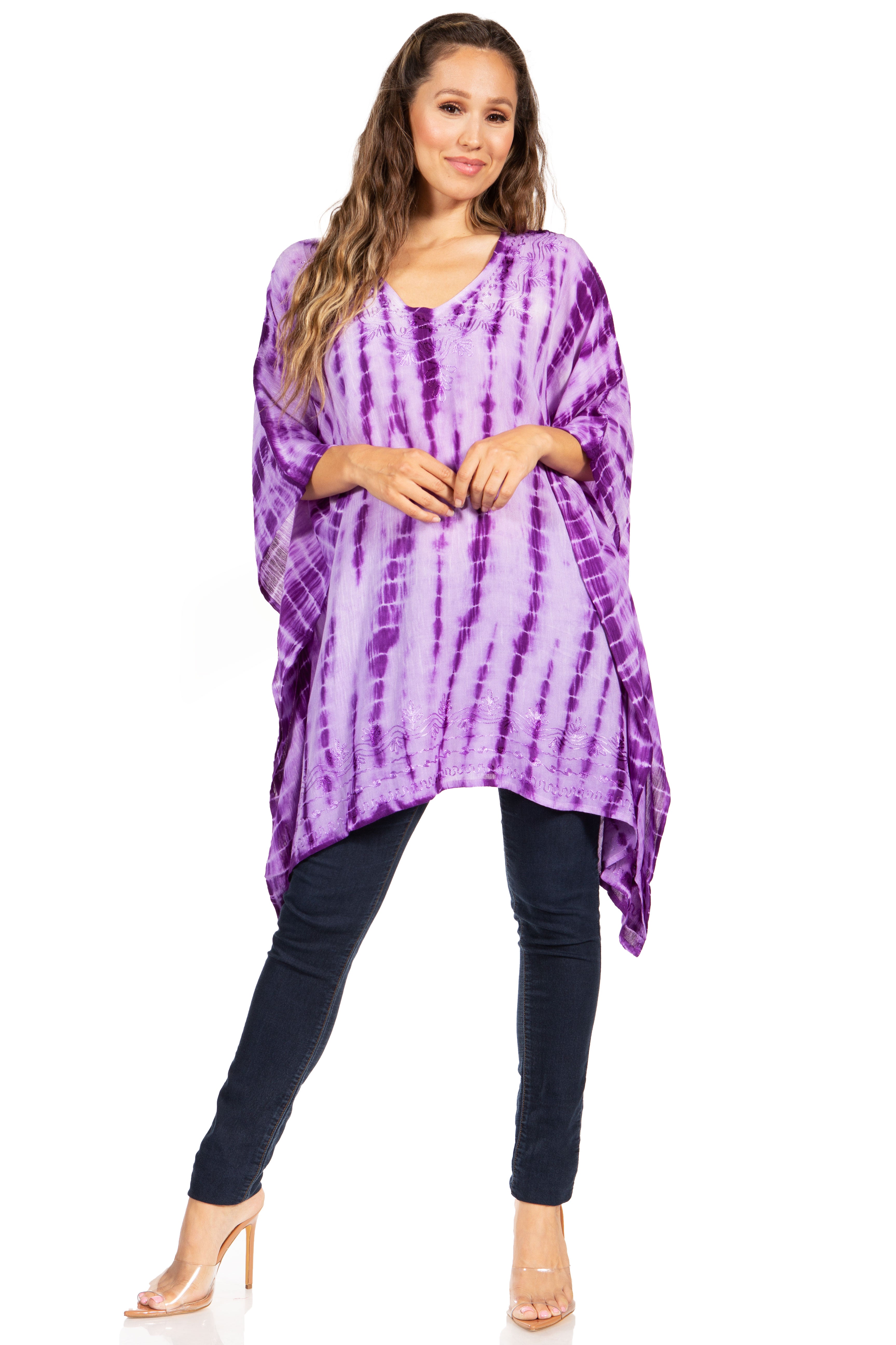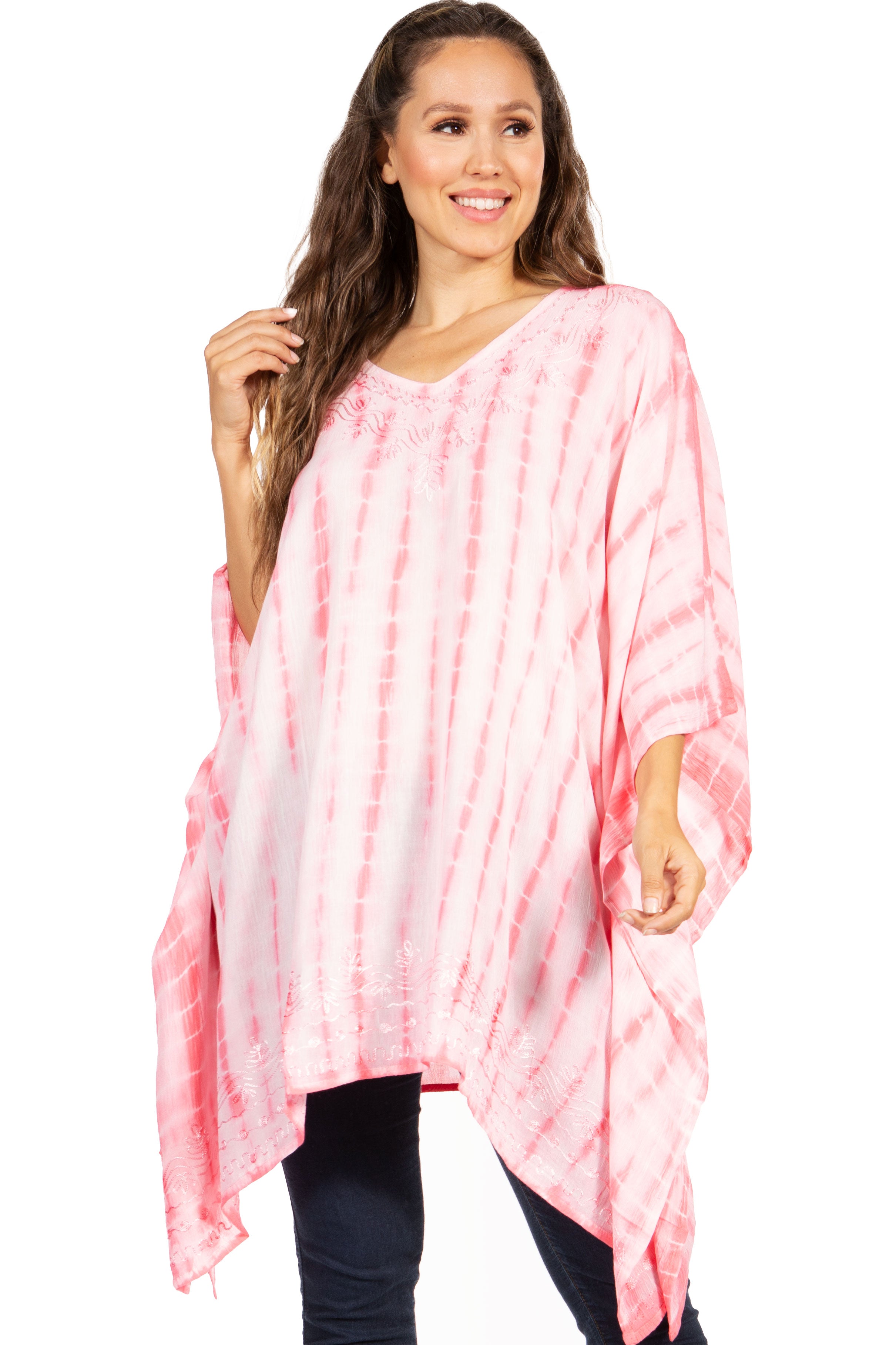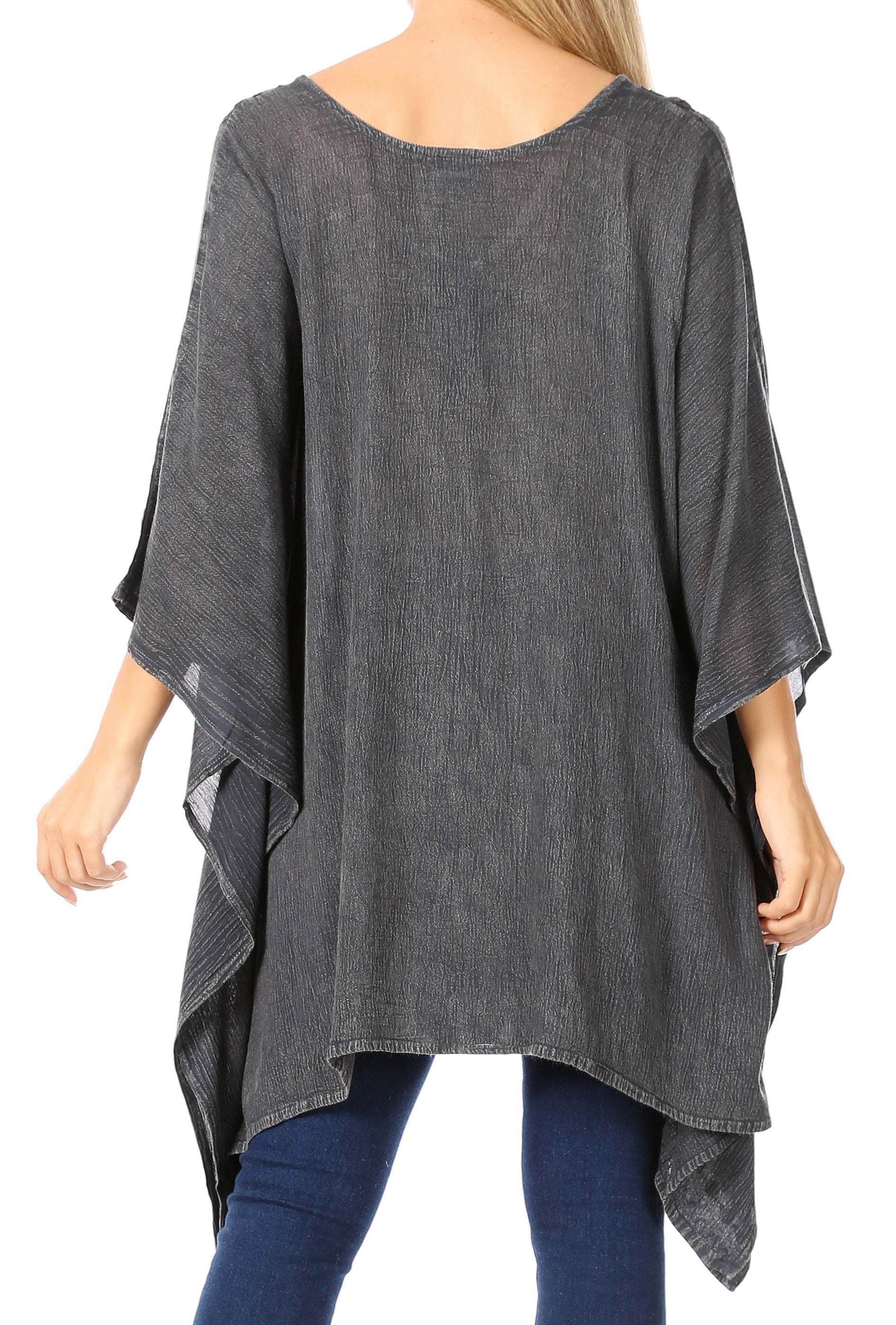 Sakkas Wren Lightweight Circle Poncho Top Blouse With Detailed Embroidery