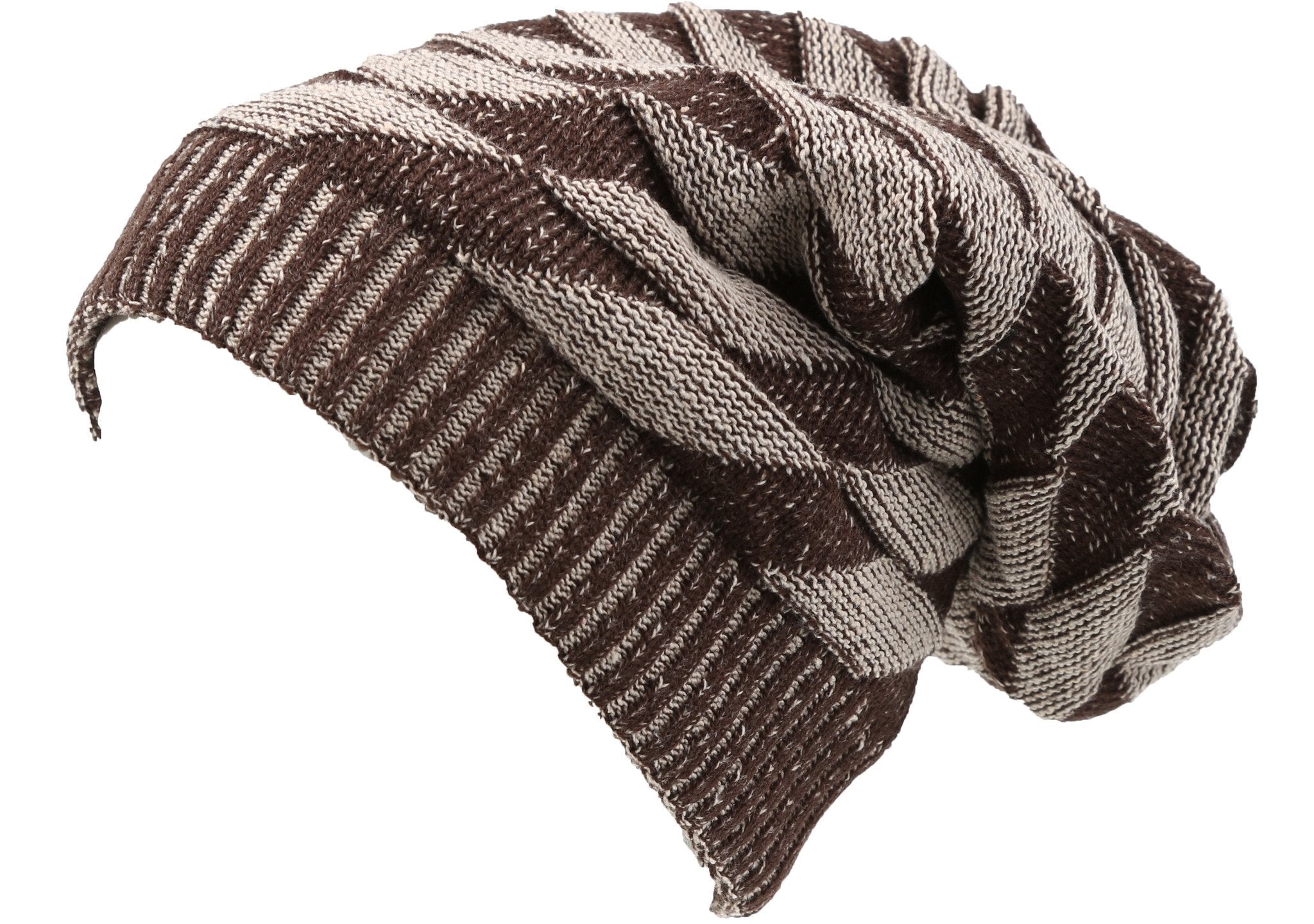 Sakkas Zaye Long Tall Slouchy Diamond Patterned Knit Faux Fur Lined Beanie Hat