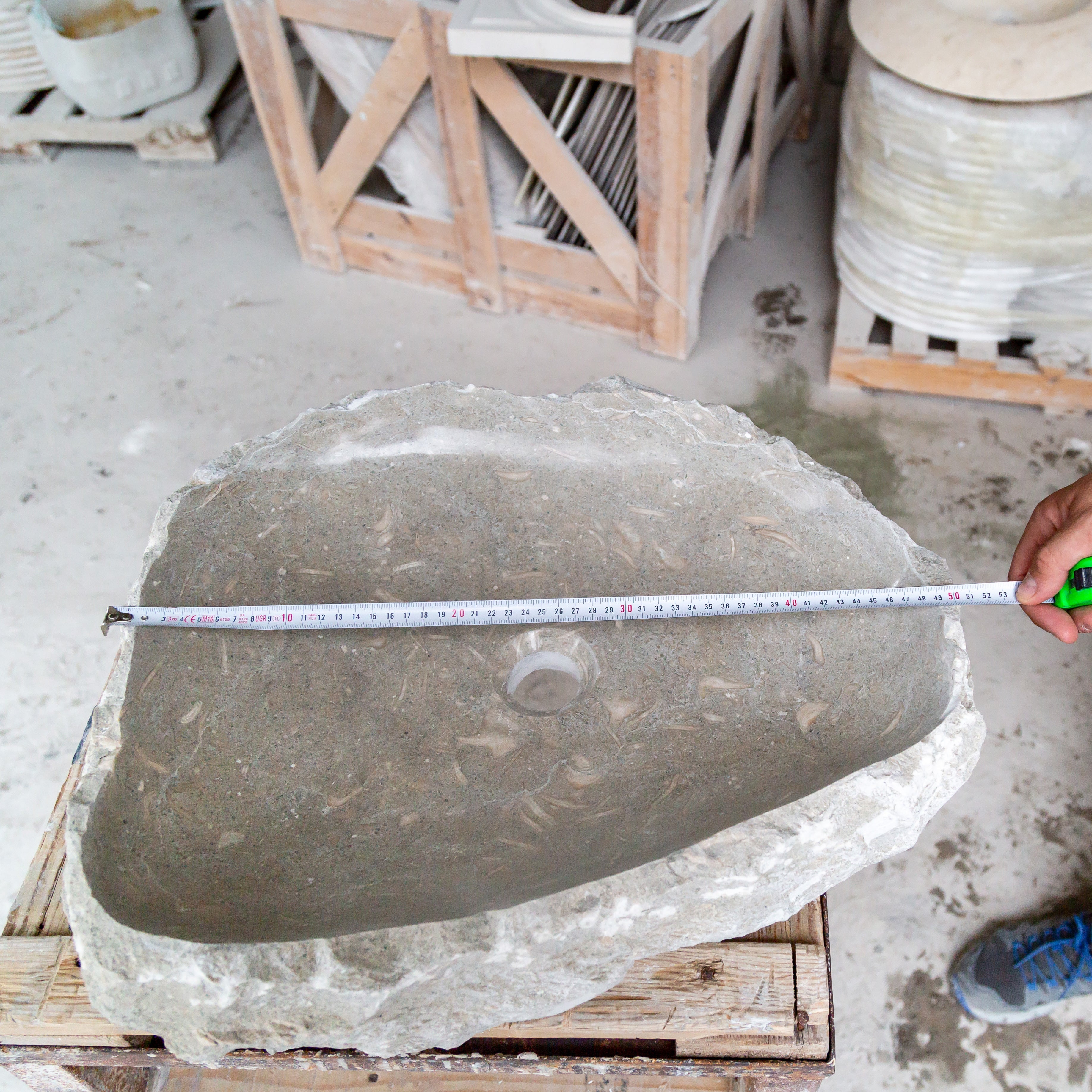 Seagrass Fossil Limestone Rustic Natural Stone Vessel Sink Polished Interior Hand Chiseled Exterior is Handcrafted in Turkey. It can be used in bathrooms above the counter.