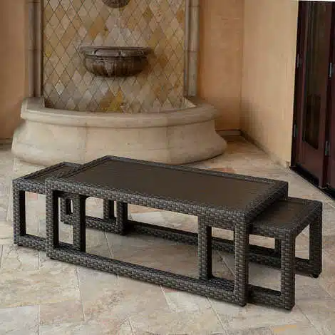 Generously sized at 33.3" wide, the two recliner chairs offer roomy and comfortable seating along with an extendable footrest. With a lever actuated reclining mechanism, the wicker club chairs recline easily and offer almost infinite reclining positions. Pull the footrests out so you can kick up your feet and relax or slide them back underneath the seating area to save space while not in use.