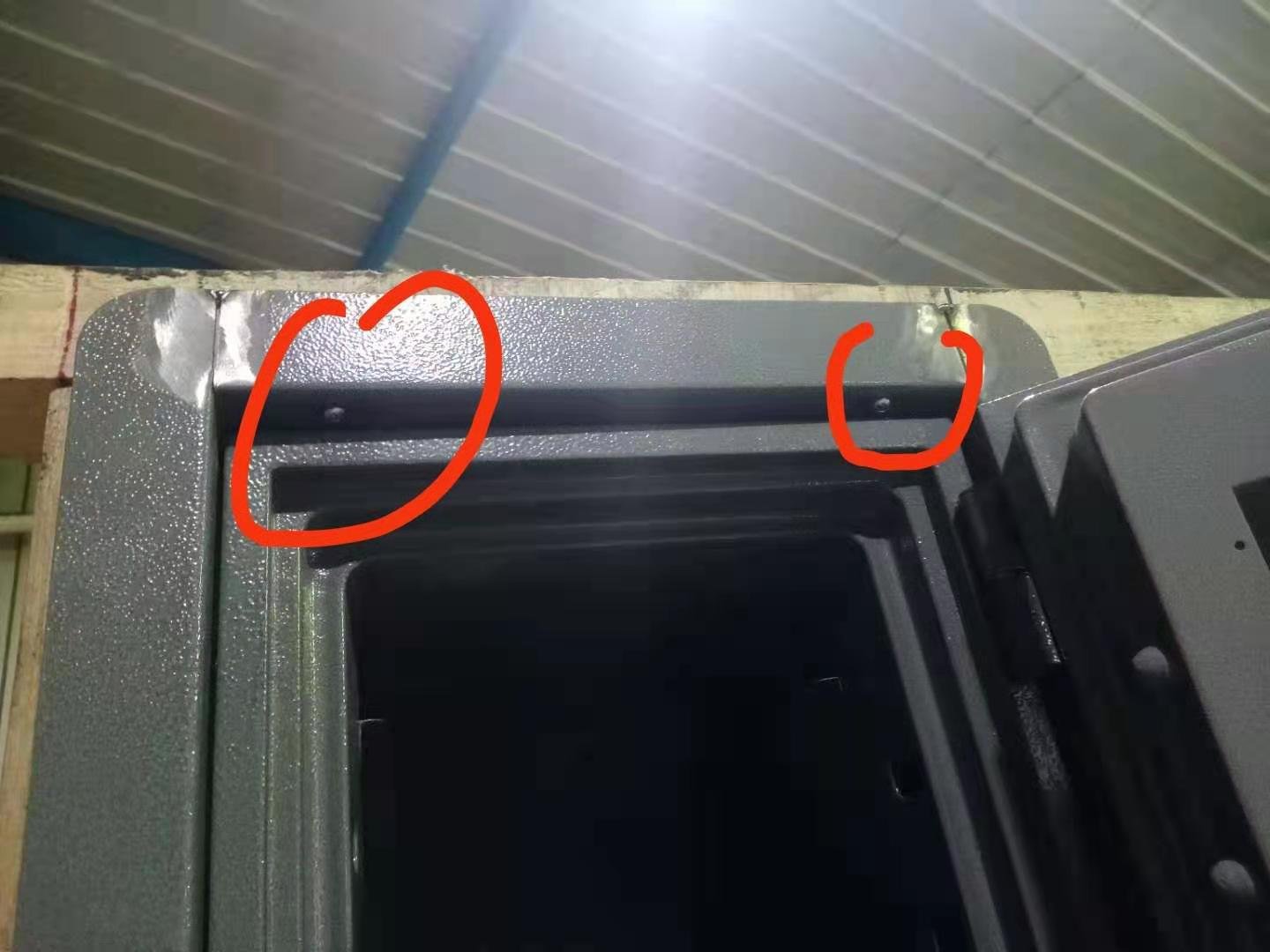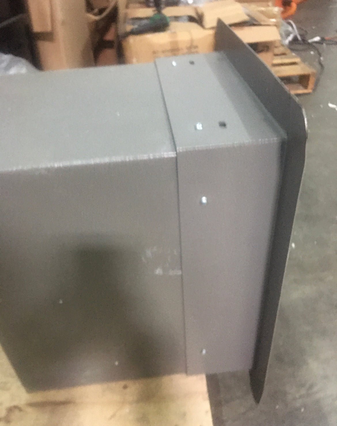 Recessed door so that the lock and handle will not stick out ensuring that pictures can be hung over this safe to hide it.