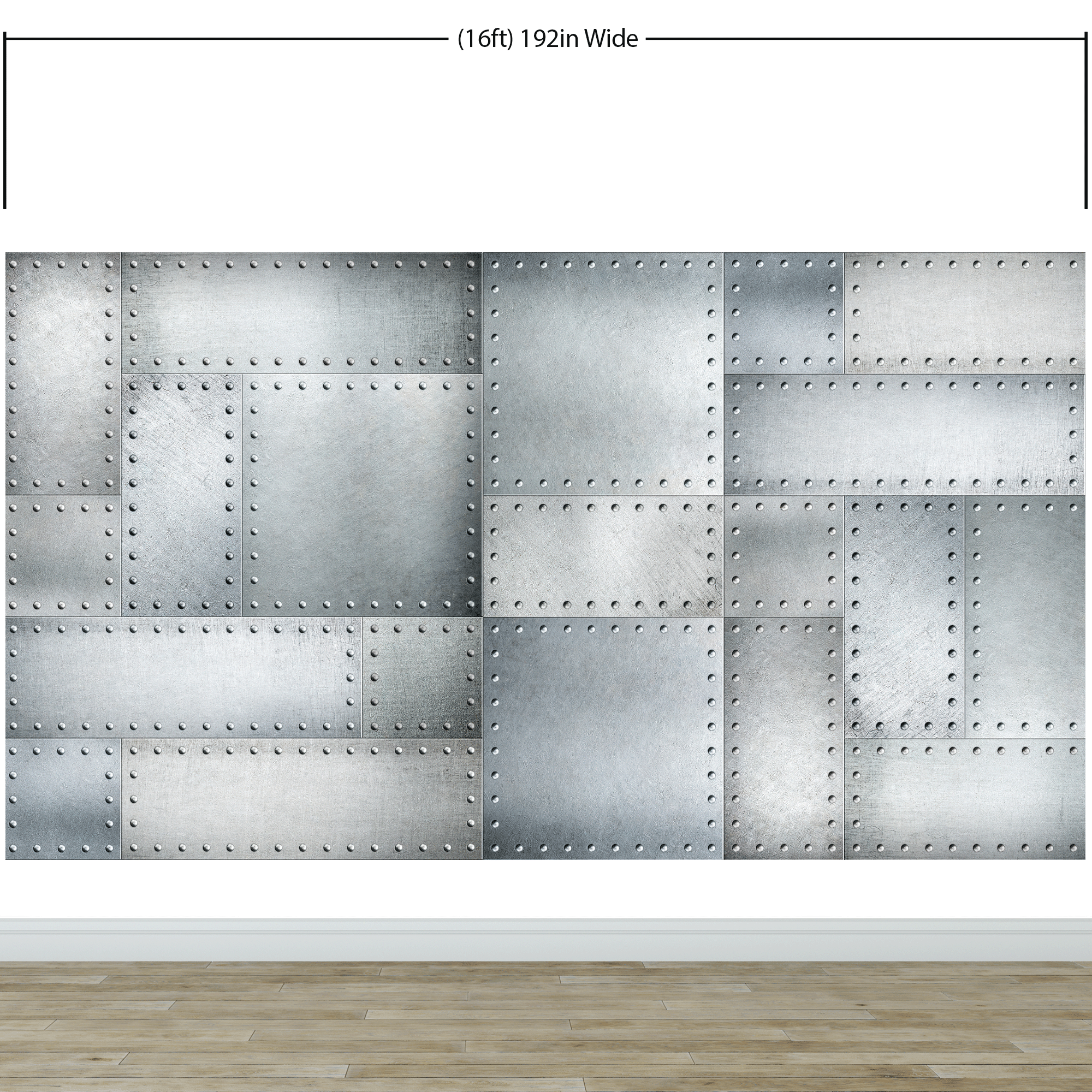 Stainless Steel Metal Grunge Design Wall Mural. Industrial Theme Peel and Stick Wallpaper. #6350