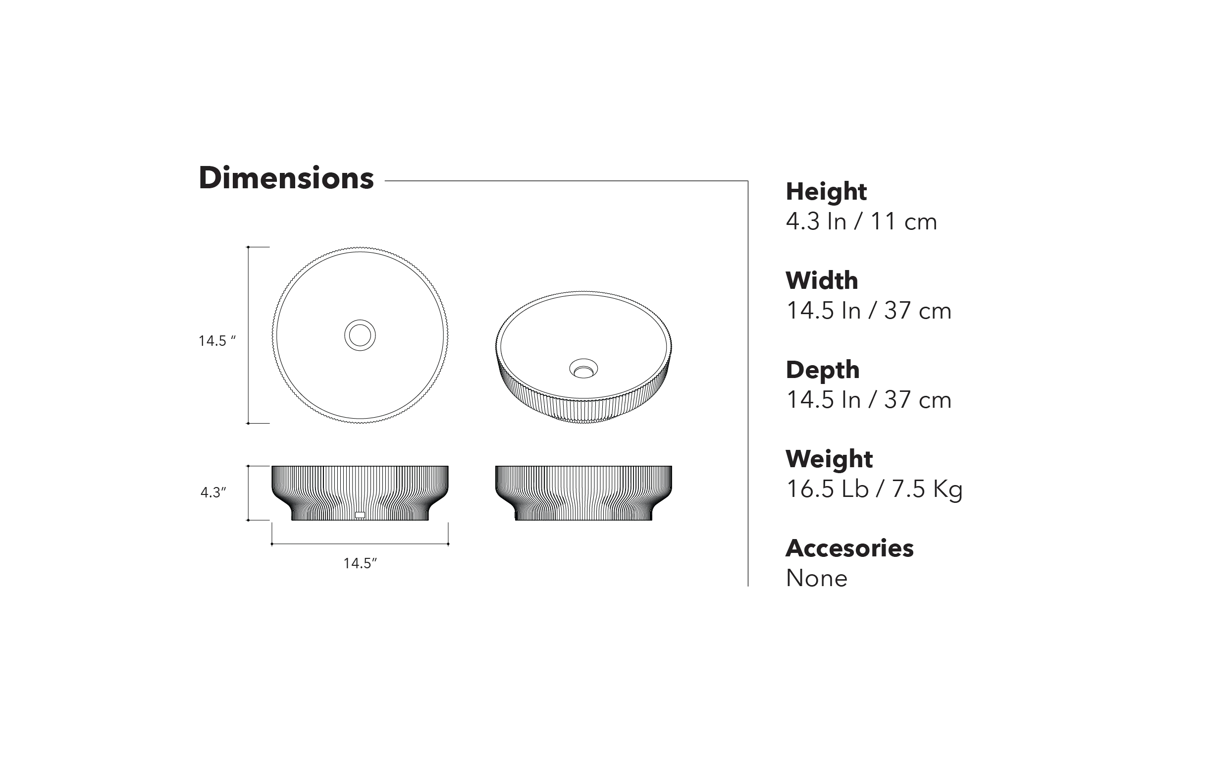*Dimensions may vary due to the nature of our product. Product images are for illustrative purposes only and may differ from the actual product. Due to differences in monitors, colors of products may also appear different to those shown. Due to concrete’s nature, material may present changes and look different from the one shown in images. Remember, each piece is perfectly imperfect.