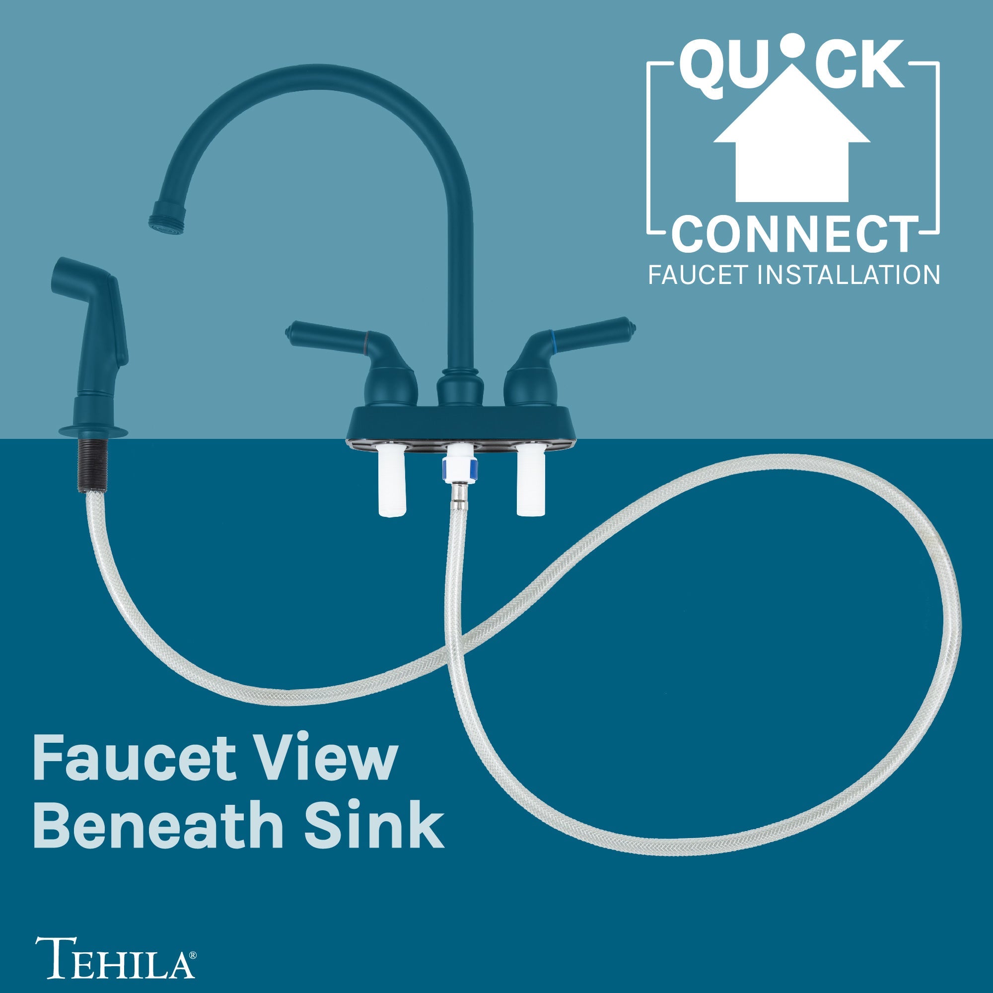 Add a fresh new look to your sink or utility tub with Tehila’s gooseneck faucet and side sprayer attachment. The dual-handle design ensures effortless temperature control while clearly marked hot and cold symbols make the faucet easy for kids to use.