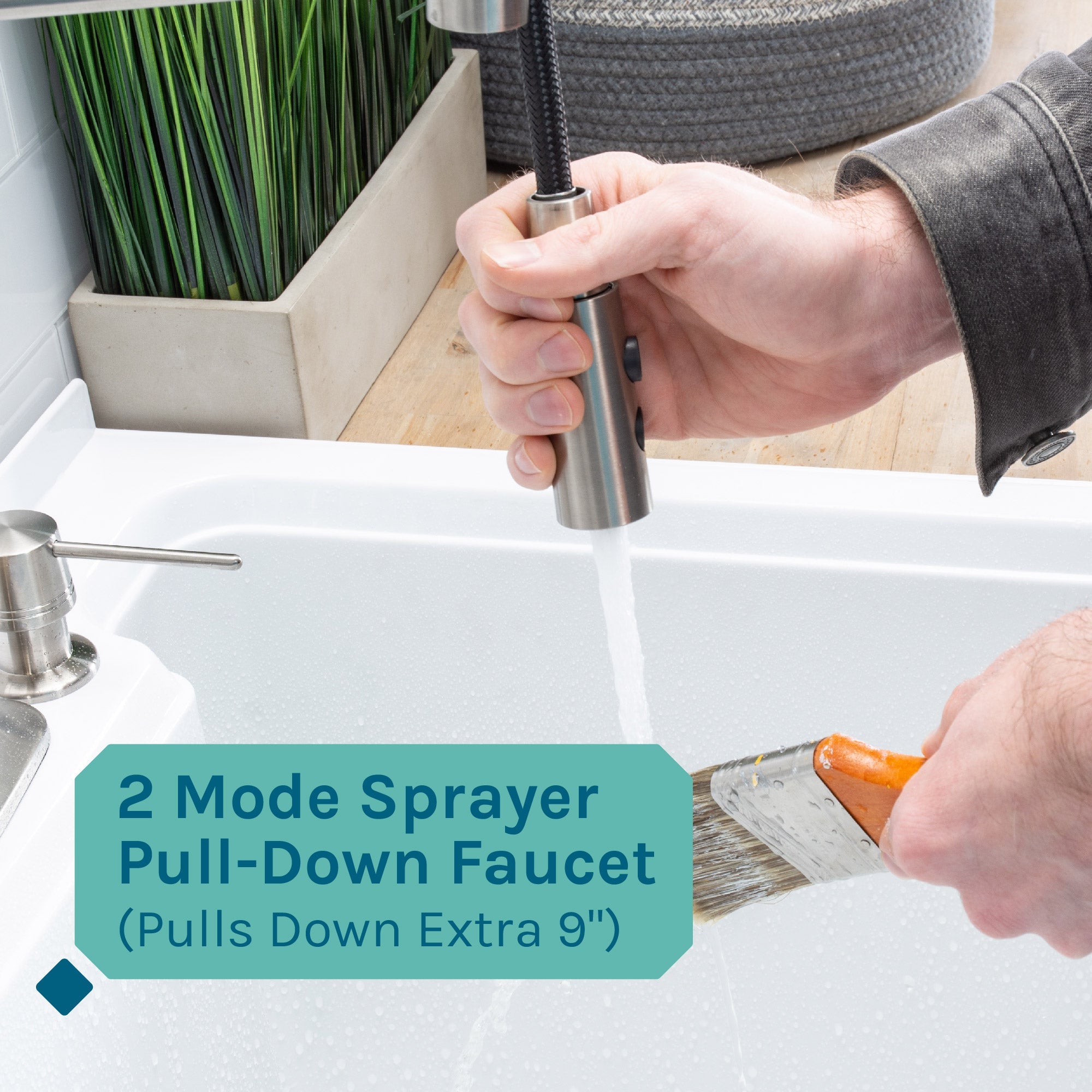 The Tehila high-arc coil faucet is the perfect addition to your modern home. Its unique coil design is sure to add visual interest to any sink. The sprayer head is designed to pull down, making it effortless to rinse tools or cleaning hard-to-reach areas. You can easily switch between spray or aerated modes with the touch of a button for all of your cleaning needs. The single-handle temperature and flow control allows you to adjust the water pressure to your liking.