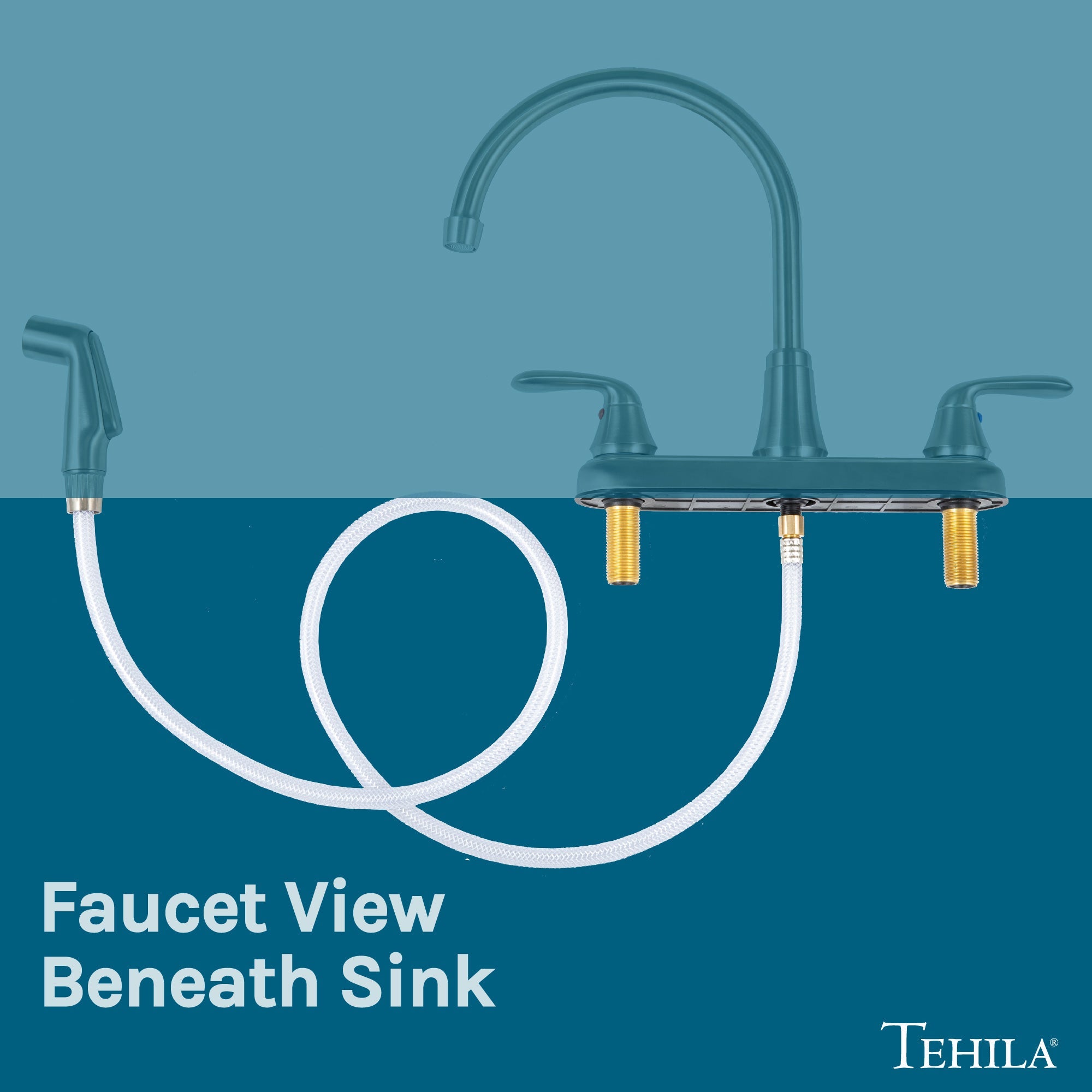 Tehila Stainless Steel Finish Wide-set Gooseneck Faucet with Side Sprayer