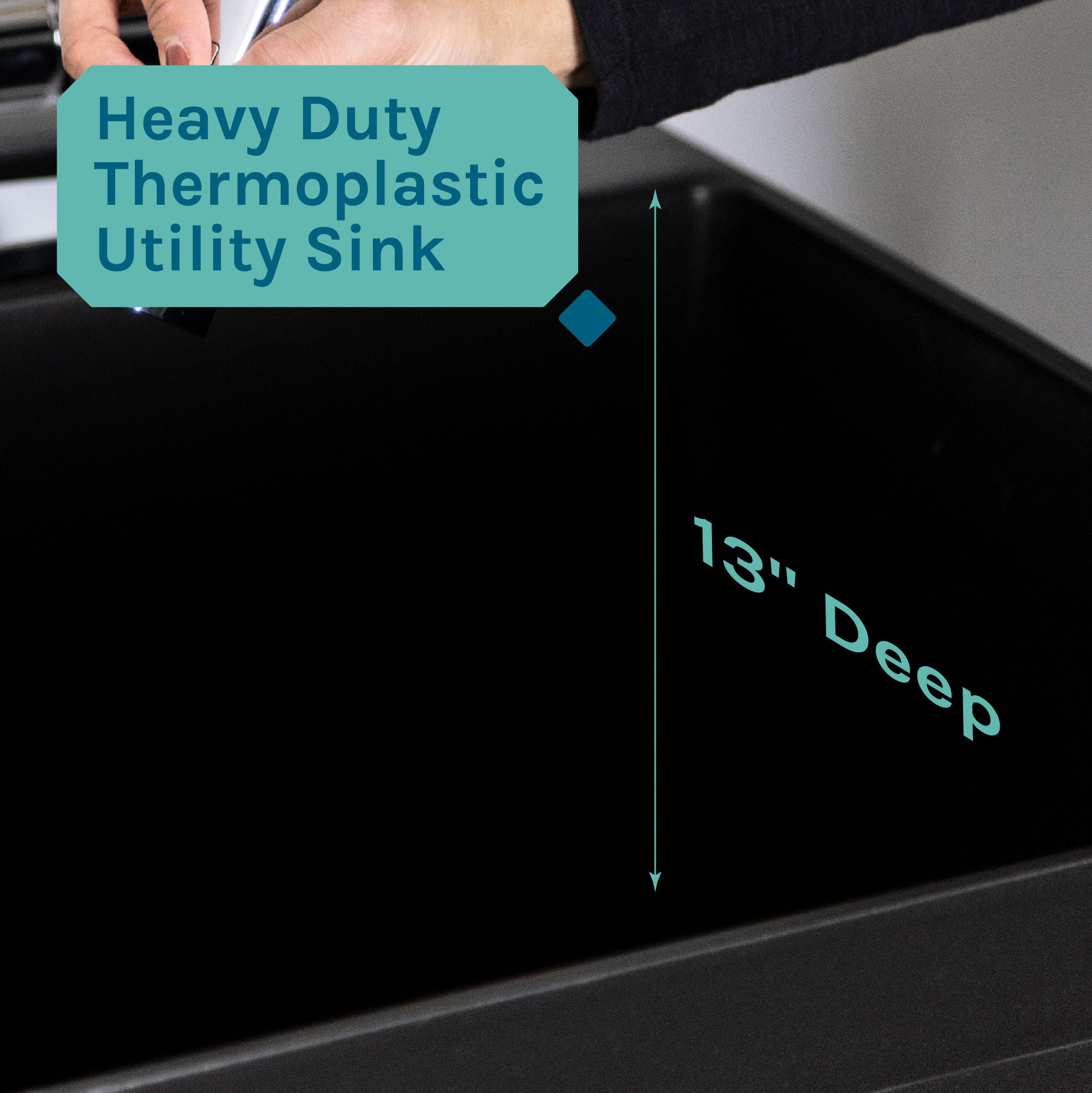 Tehila Standard Freestanding Black Utility Sink with Chrome Finish High-Arc Pull-Down Faucet