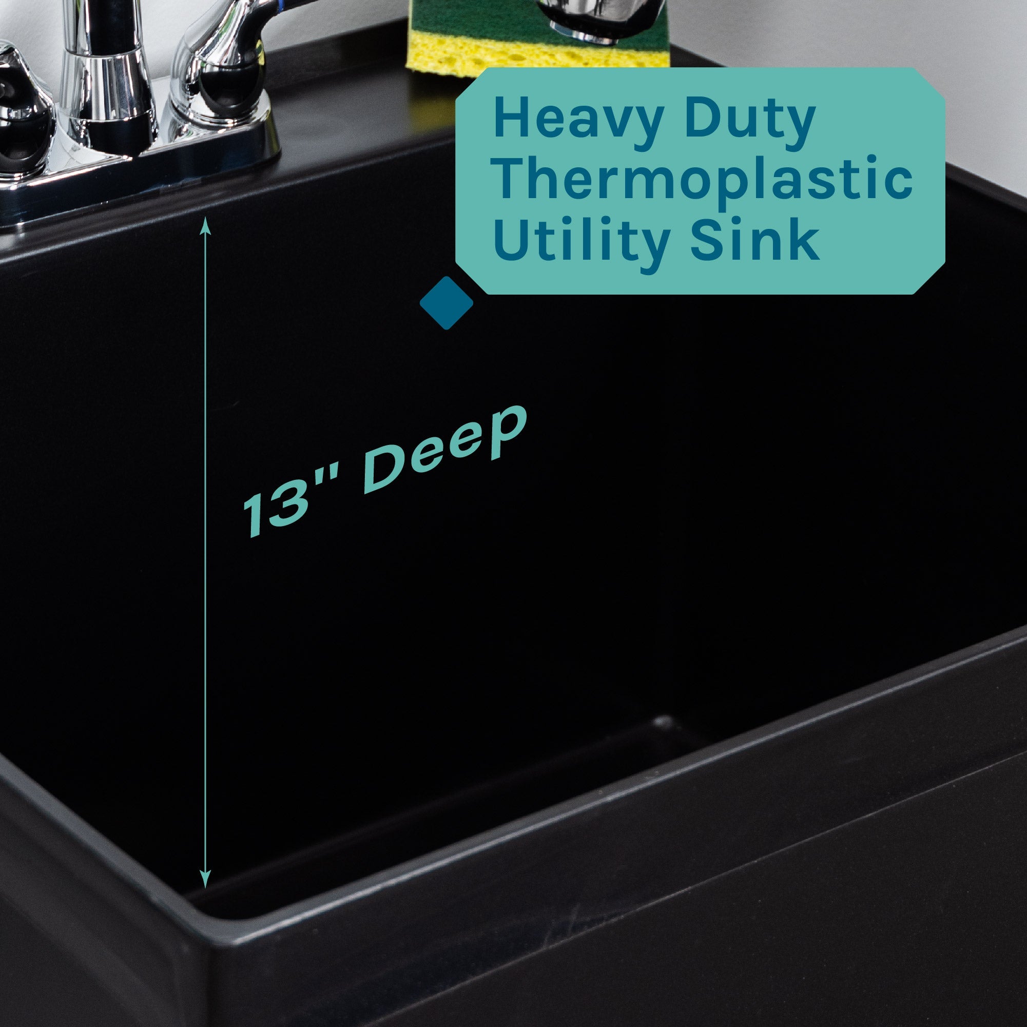 Tehila Standard Freestanding Black Utility Sink with Chrome Finish Pull-Out Faucet