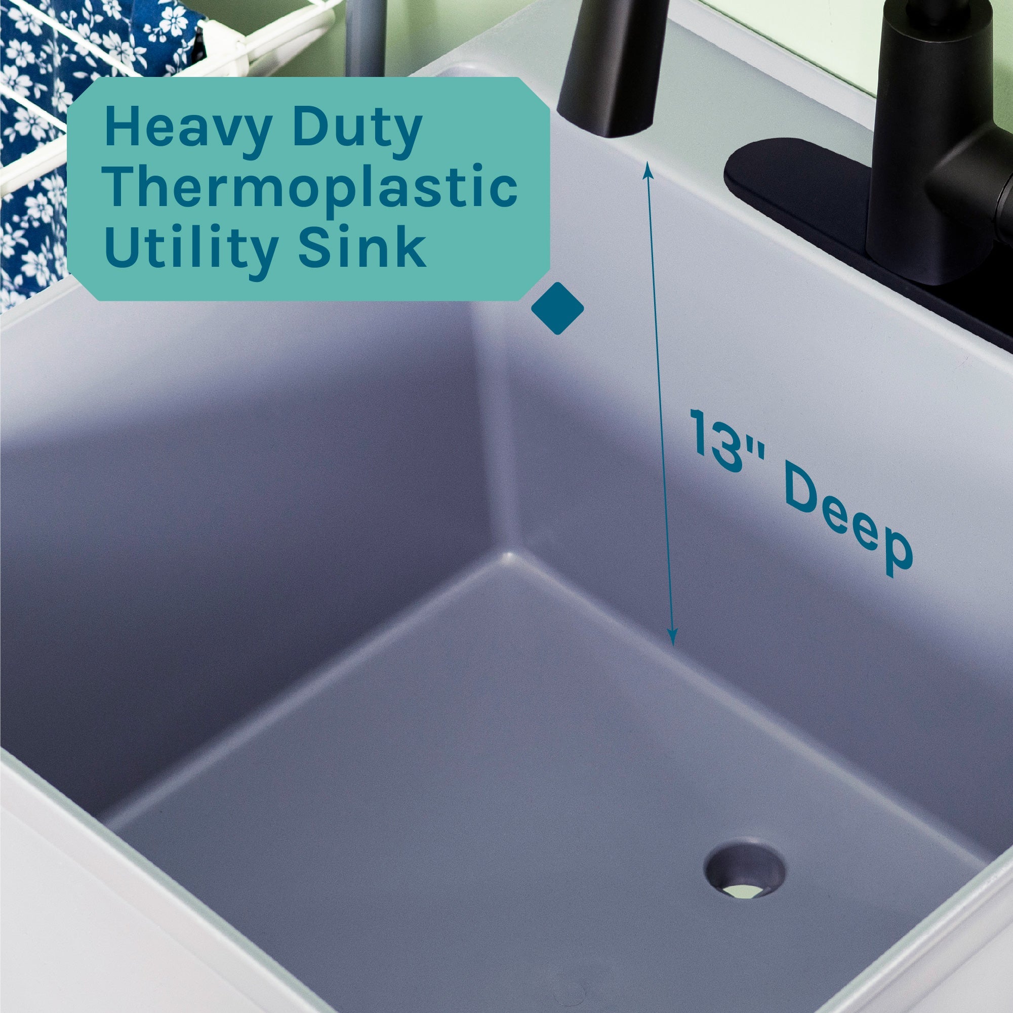 Tehila Standard Freestanding Grey Utility Sink with Black Finish High-Arc Pull-Down Faucet and Soap Dispenser