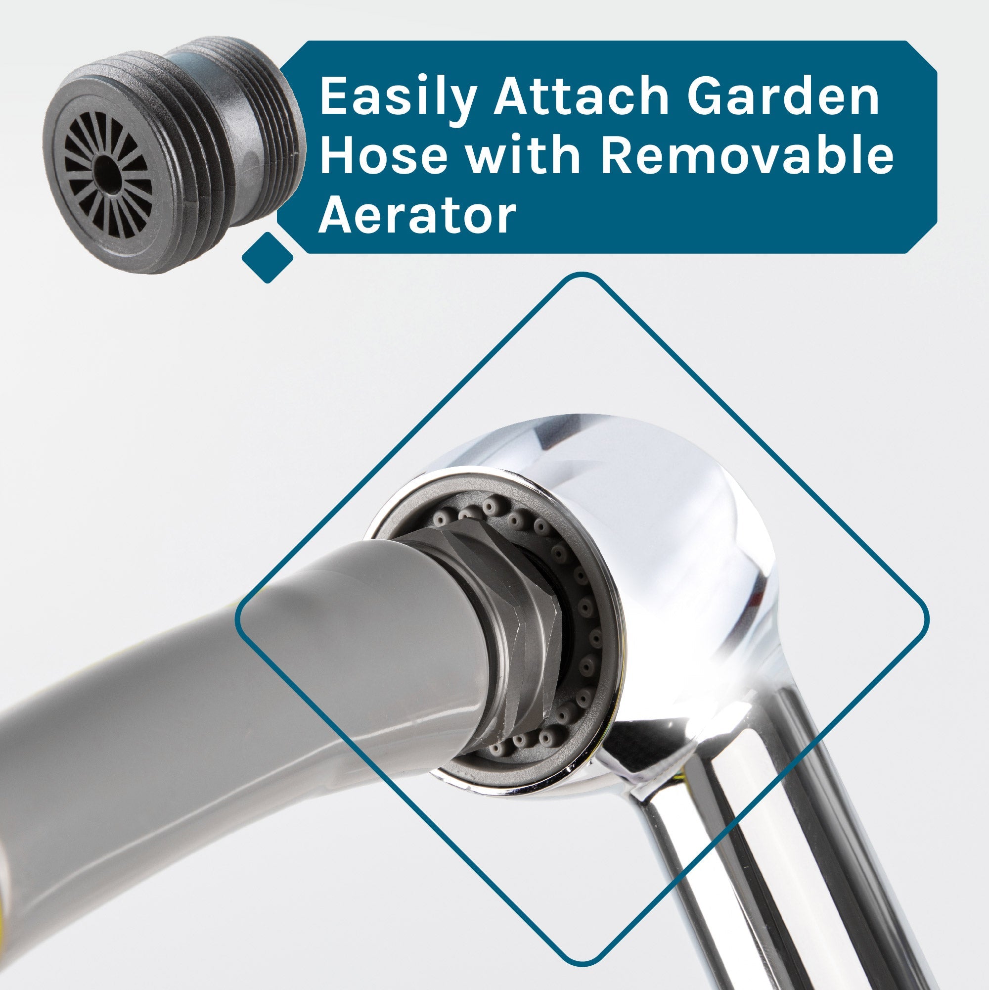 Tehila’s pull-out faucet was designed with you in mind. With the fully flexible pull-out sprayer hose, it’s easier than ever to wash dishes, soak clothes, or fill mop buckets. Dual handles ensure effortless temperature control, while clearly marked hot and cold symbols help you avoid confusion and make the faucet easy for kids to use.