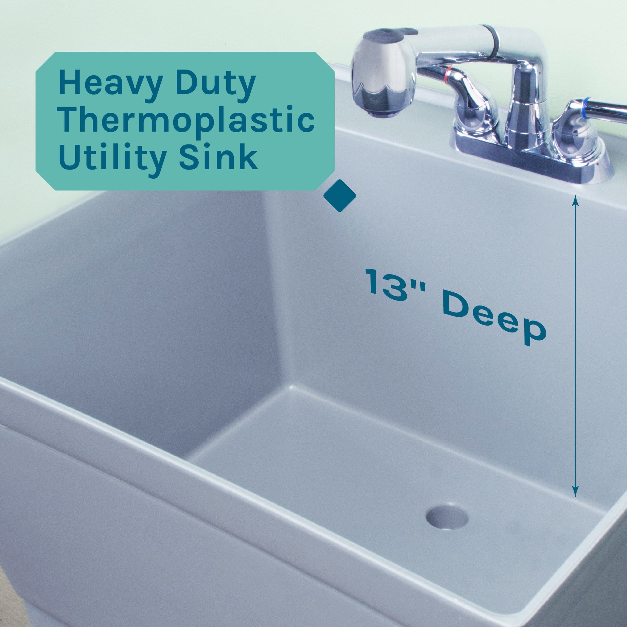 Tehila Standard Freestanding Grey Utility Sink with Chrome Finish Pull-Out Faucet