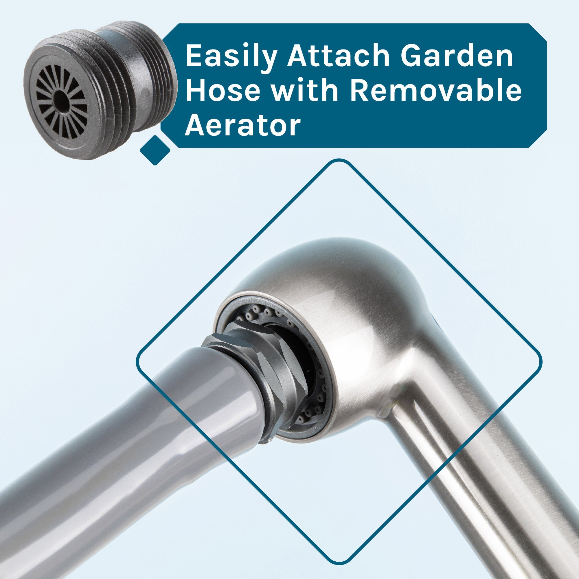 Tehila’s pull-out faucet was designed with you in mind. With the fully flexible pull-out sprayer hose, it’s easier than ever to wash dishes, soak clothes, or fill mop buckets. Dual handles ensure effortless temperature control, while clearly marked hot and cold symbols help you avoid confusion and make the faucet easy for kids to use.