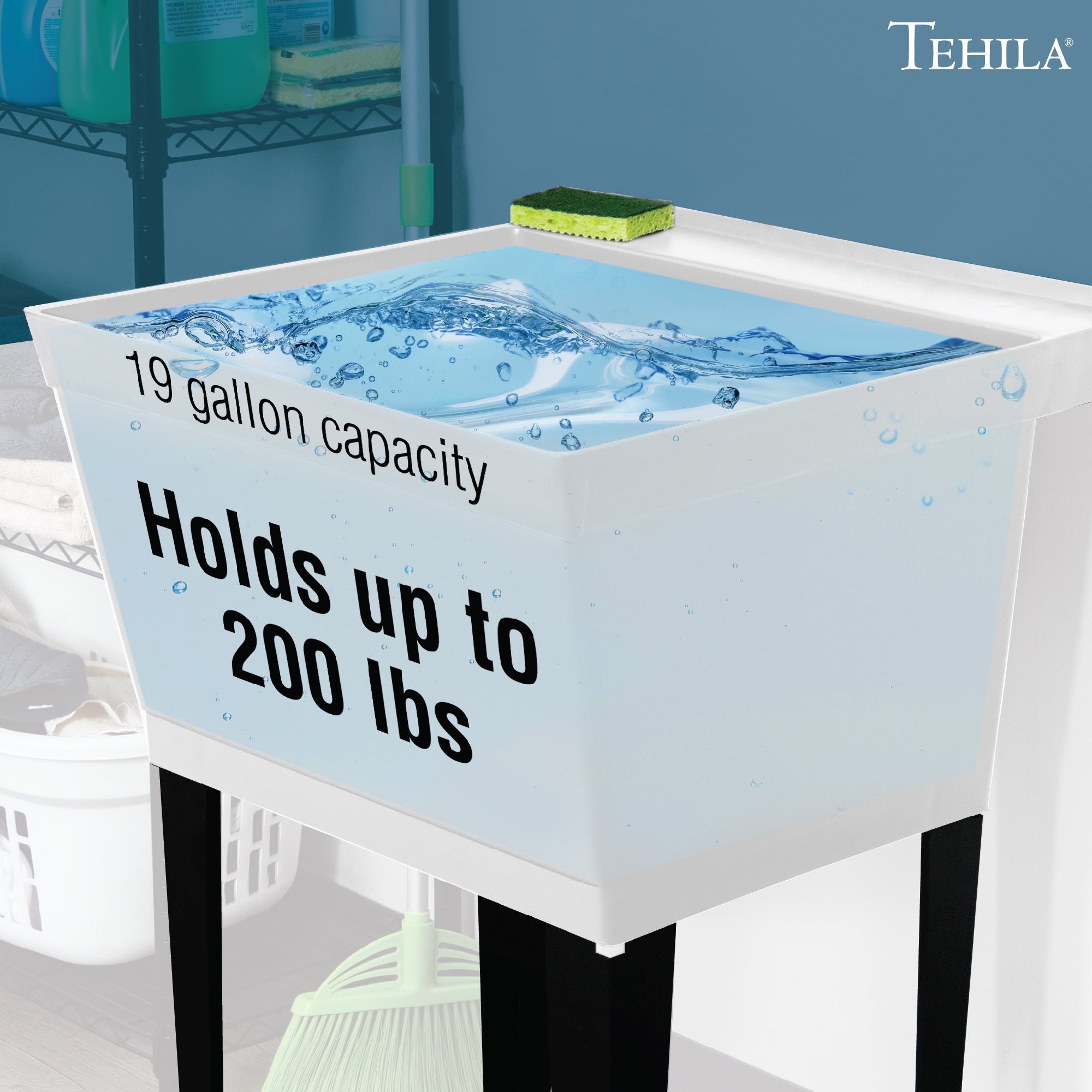Our most popular laundry tub set. The 3.5-inch pitched back deck catches splashes and offers a convenient place for hand soap, stain remover sticks, or scouring pads to rest. Sturdy rust-proof steel legs attach easily while floor levelers increase stability. Adjust the levelers to the perfect height to level the tub on bumpy or uneven surfaces, such as the floor of a utility room, basement, or industrial workshop.