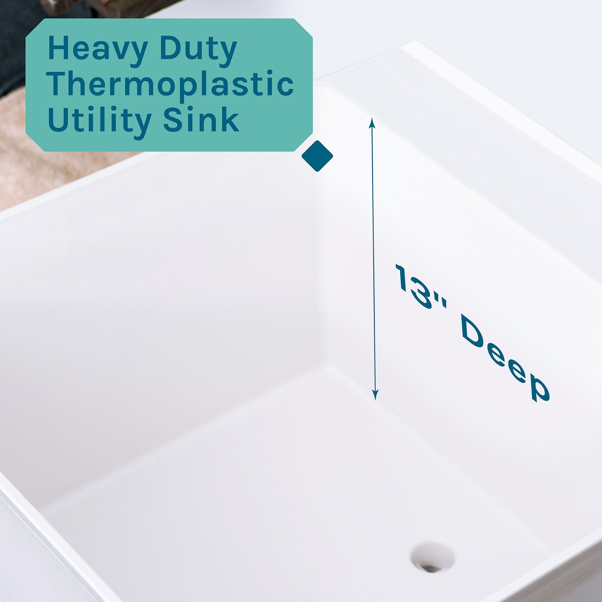 Tehila Standard Freestanding White Utility Sink with Black Legs, Water Supply Lines Included