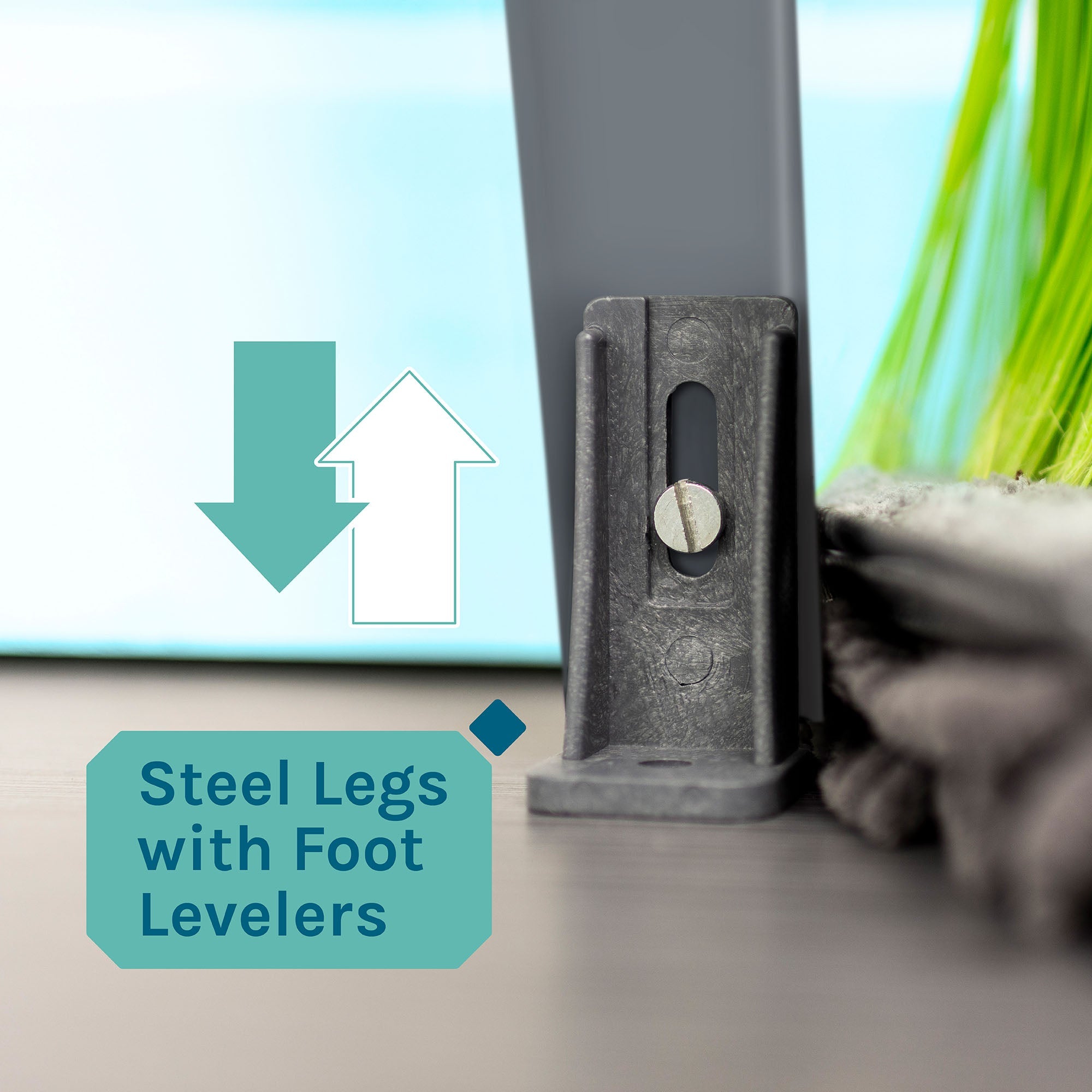 Our most popular laundry tub set. The 3.5-inch pitched back deck catches splashes and offers a convenient place for hand soap, stain remover sticks, or scouring pads to rest. Sturdy rust-proof steel legs attach easily while floor levelers increase stability. Adjust the levelers to the perfect height to level the tub on bumpy or uneven surfaces, such as the floor of a utility room, basement, or industrial workshop.