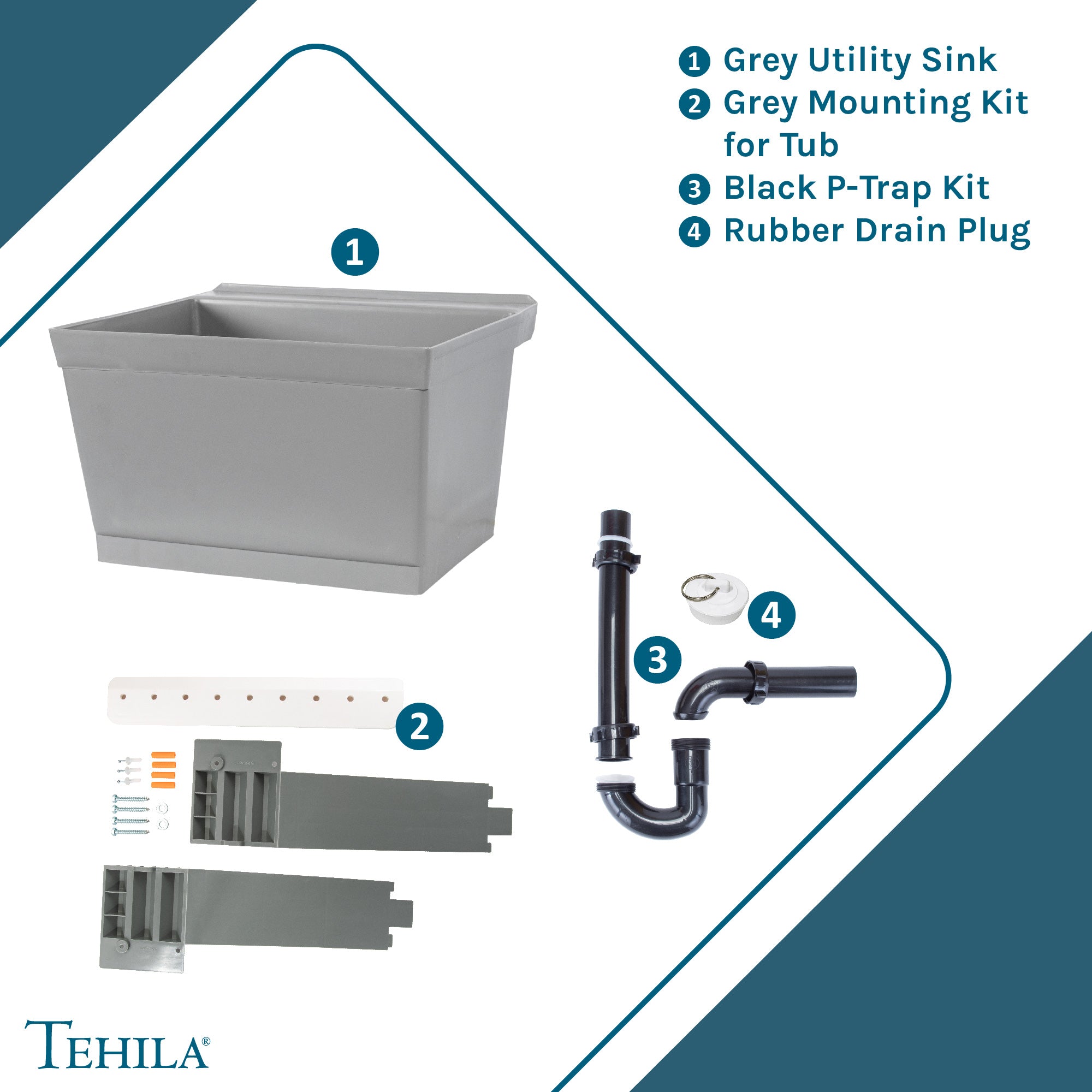 Tehila Standard Wall-Mounted Grey Utility Sink, No Supply Lines
