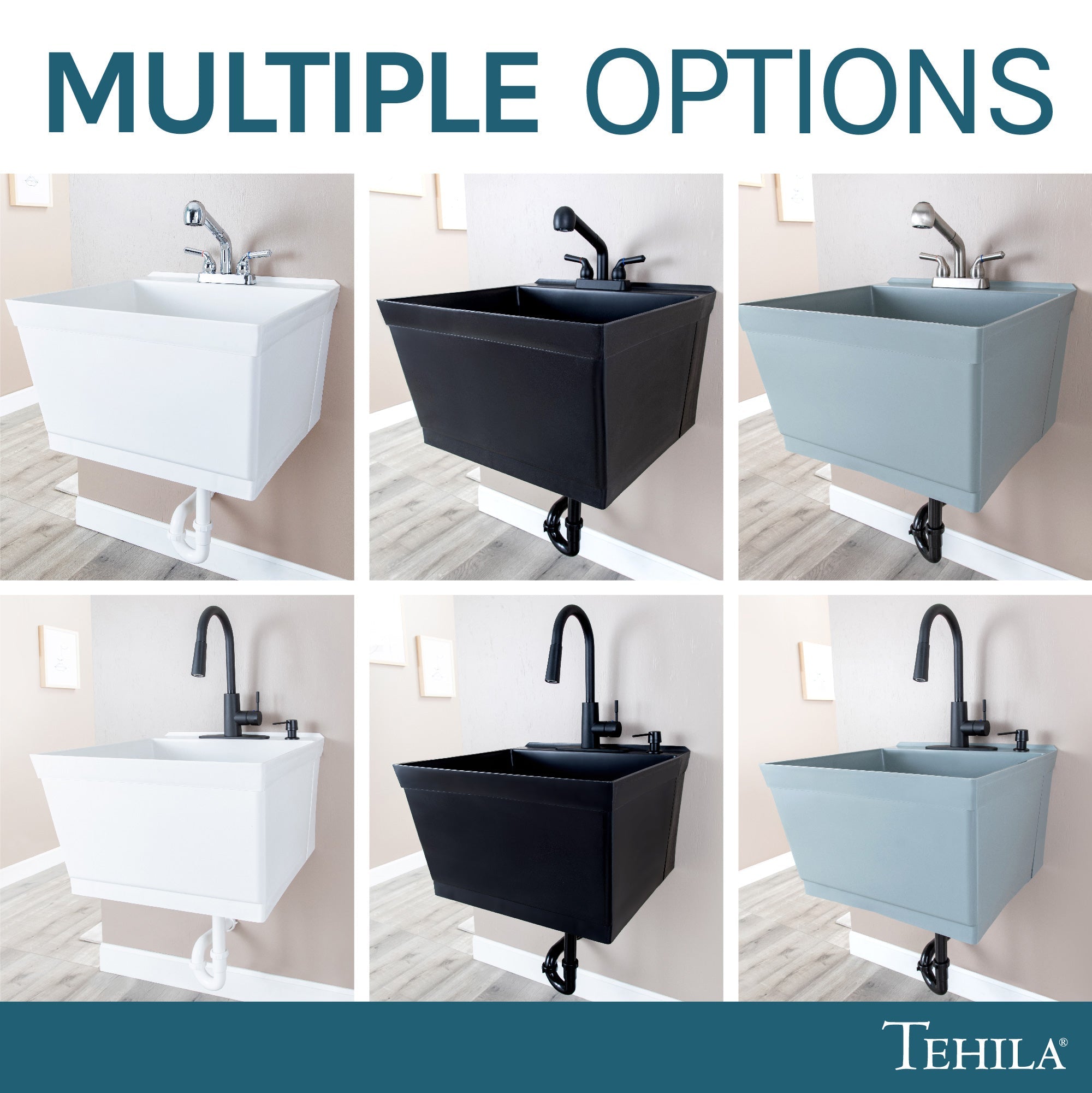 Tehila Standard Wall-Mounted White Utility Sink with Black Finish Pull-Down Faucet