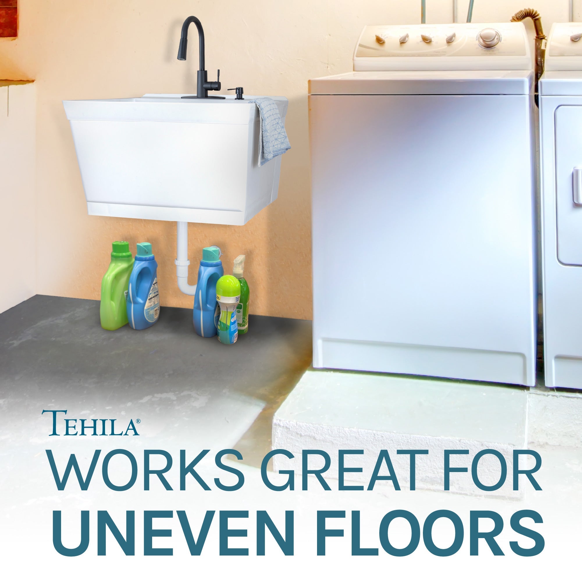 Add a utility sink to any room with this floating tub kit. The kit is great for rooms with limited space, basement setups where there are no countertops, or laundry rooms where the pipes descend from the ceiling.