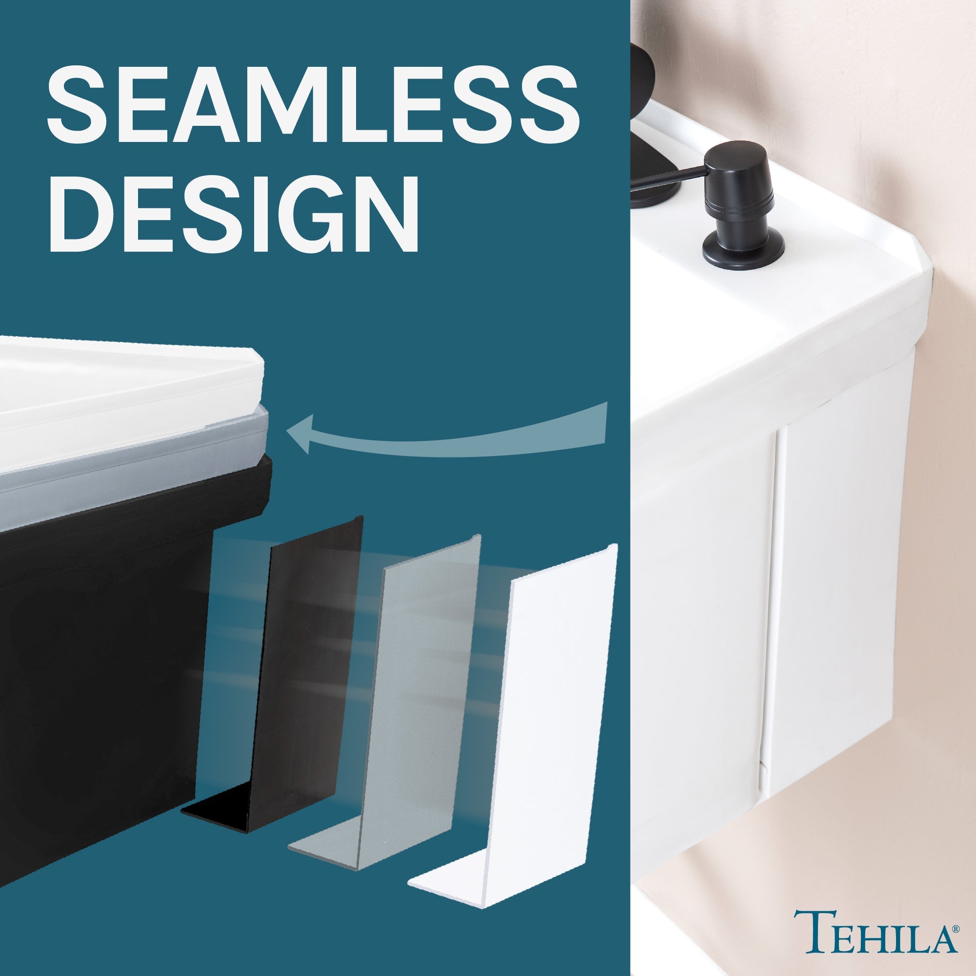 The Tehila floating tub kit’s wall-mounted design takes up less floor space than a standard utility sink, making it easy to clean. There are no legs to wipe down or to get in the way when cleaning the floor.