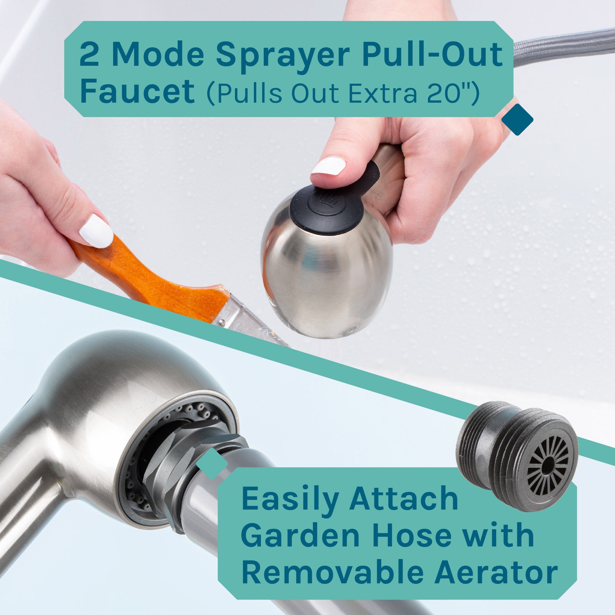 Tehila’s pull-out faucet was designed with you in mind. With the fully flexible pull-out sprayer hose, it’s easier than ever to wash dishes, soak clothes, or fill mop buckets. Dual handles ensure effortless temperature control, while clearly marked hot and cold symbols help you avoid confusion and make the faucet easy for kids to use. Choose from multiple color options for a stylish addition to any room, whether you’re replacing an existing faucet or setting up a new utility sink in your basement or garage.