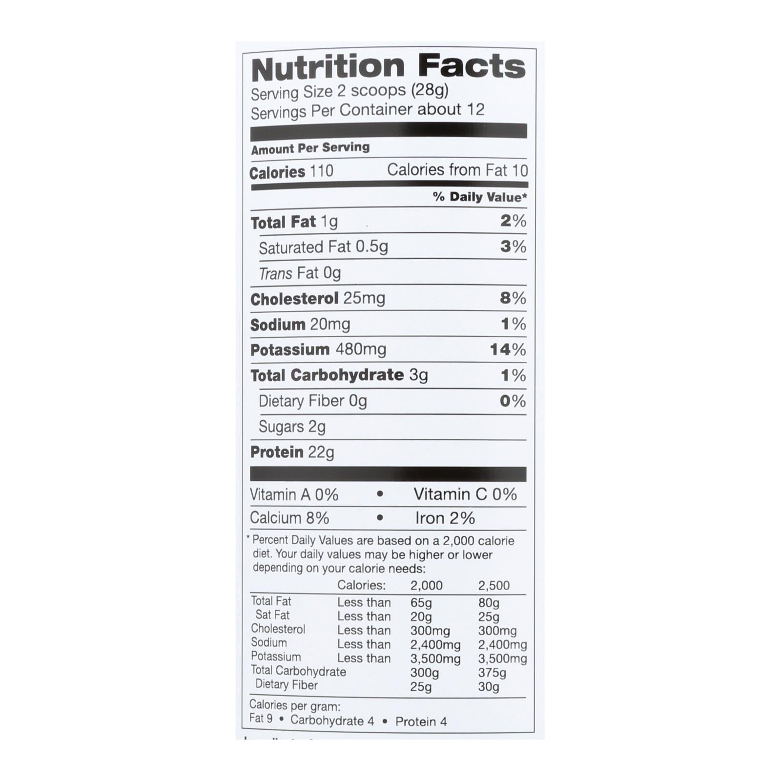 Tera's Whey Protein is the perfect choice for those looking for a nutritious and delicious way to supplement their diet. This 12 oz. Canister of Goat Plain Unsweetened Protein is Non-GMO, certified Gluten-Free and Kosher-Dairy, with 0 g. of Trans Fat and just 2 g. of Sugar per serving. Every 2-scoop serving provides 22 g. of Protein, along with 14% of the daily recommended value of Potassium and 8% of the recommended value of Calcium. This protein powder is the perfect addition to your smoothies, shakes, and baking recipes. It's also an ideal choice for those with dietary restrictions and sensitivities, as it is free from Yeast and Glycemic. Plus, it contains a variety of Vitamins and Supplements that are essential for helping you meet your daily nutritional needs. Tera's Whey Protein is a fast and easy way to add the protein your body needs to get the most out of your workouts. With its delicious taste and unbeatable nutrition, you can enjoy the benefits of Goat Plain Unsweetened Protein every day. Get your 12 oz. canister of Tera's Whey Protein today and take advantage of all the vitamins, minerals, and protein it contains.