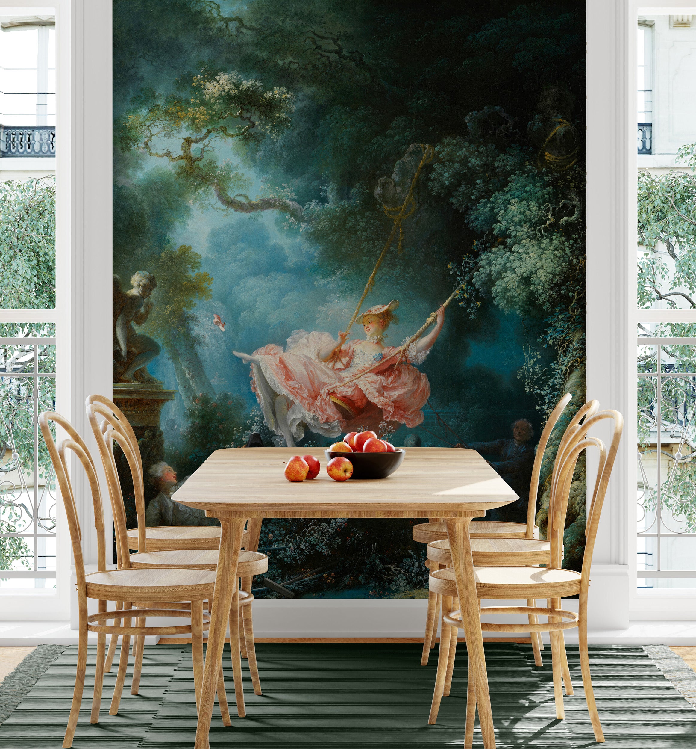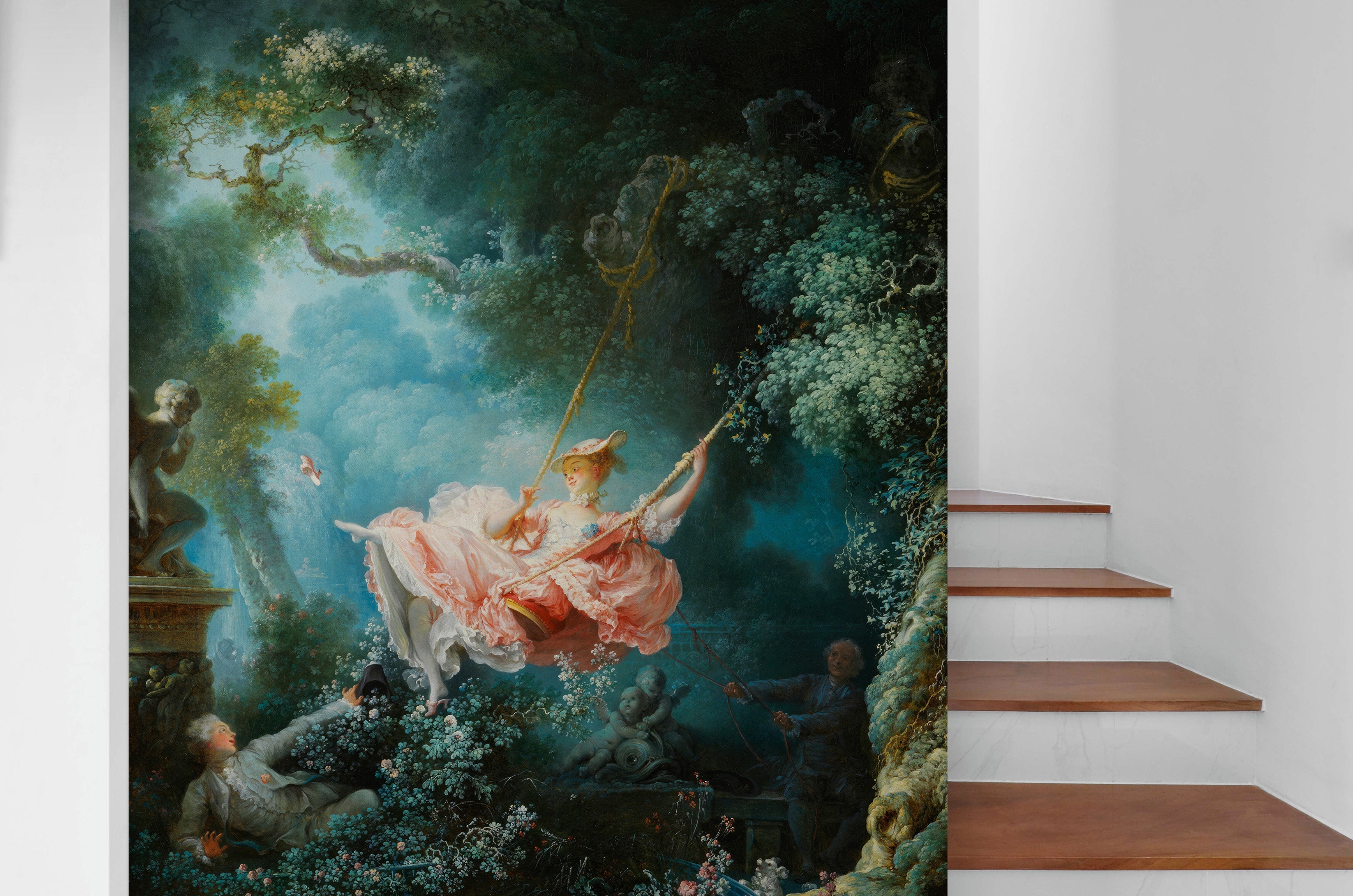 This oil painting known as The Swing was created by the French artist Jean-Honoré Fragonard sometime during 1767 and 1768. A gentleman of the court reportedly requested the painter represent his mistress being pushed on a swing as he secretly admired her from below. While the figures in the work are not identifiable as portraits of specific individuals, their rich attire and leisurely activity underline their aristocratic status.Such playful and erotic scenes were popular among the elite during those time.