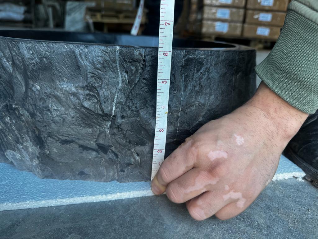 The combination of a smooth, polished interior and chiseled exterior ensures this oval sink will be the focal point of your bathroom decor. The breathtaking toros black from Turkey will blend into any setting. These bowl sinks for bathrooms are not only convenient for everyday use, but also an ornament for your living space. The artisanal construction ensures that no two sinks will be exactly identical. The polished interior is perfectly paired with a unique textured exterior for a tactile experience.