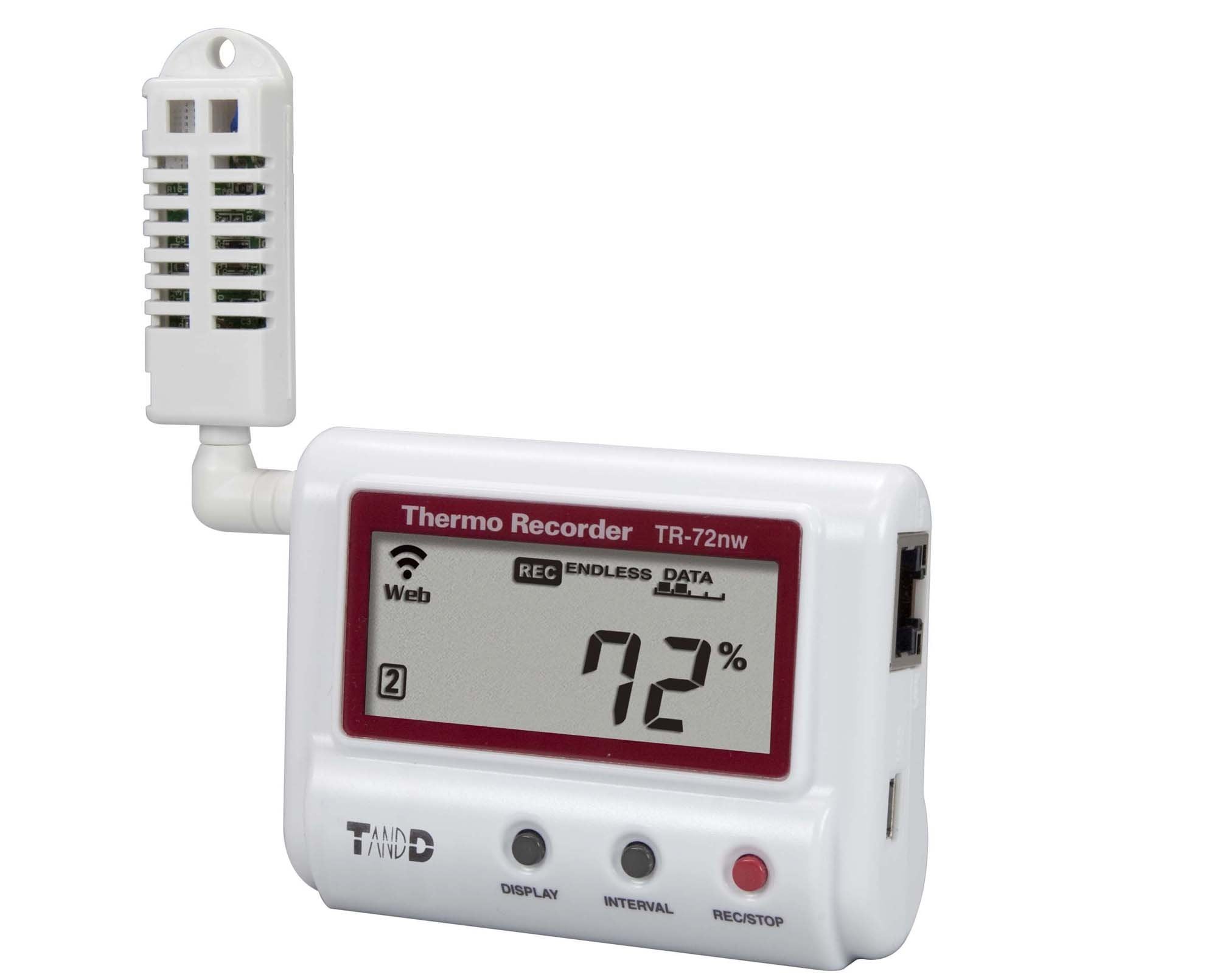The TandD TR-72nw is a temperature and RH data logger, but is available in a high precision model--TR-72nw-H.  By using T&D WebStorage Service, a cloud service provided by T&D free of charge, it is possible to access stored data anytime from anywhere.