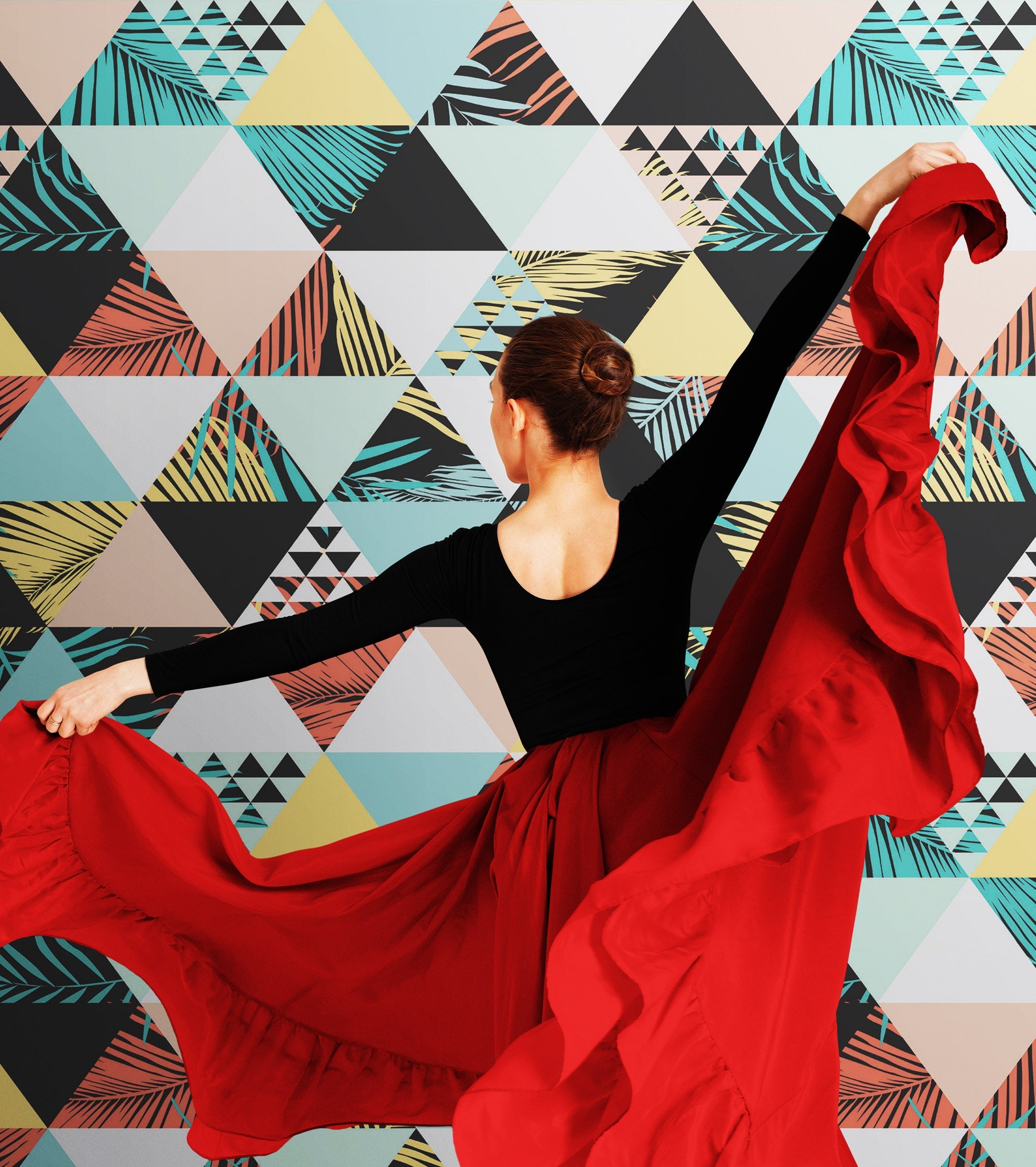 Triangle Geometric Abstract Palm Tree Leaves Pattern Wall Mural. #6431