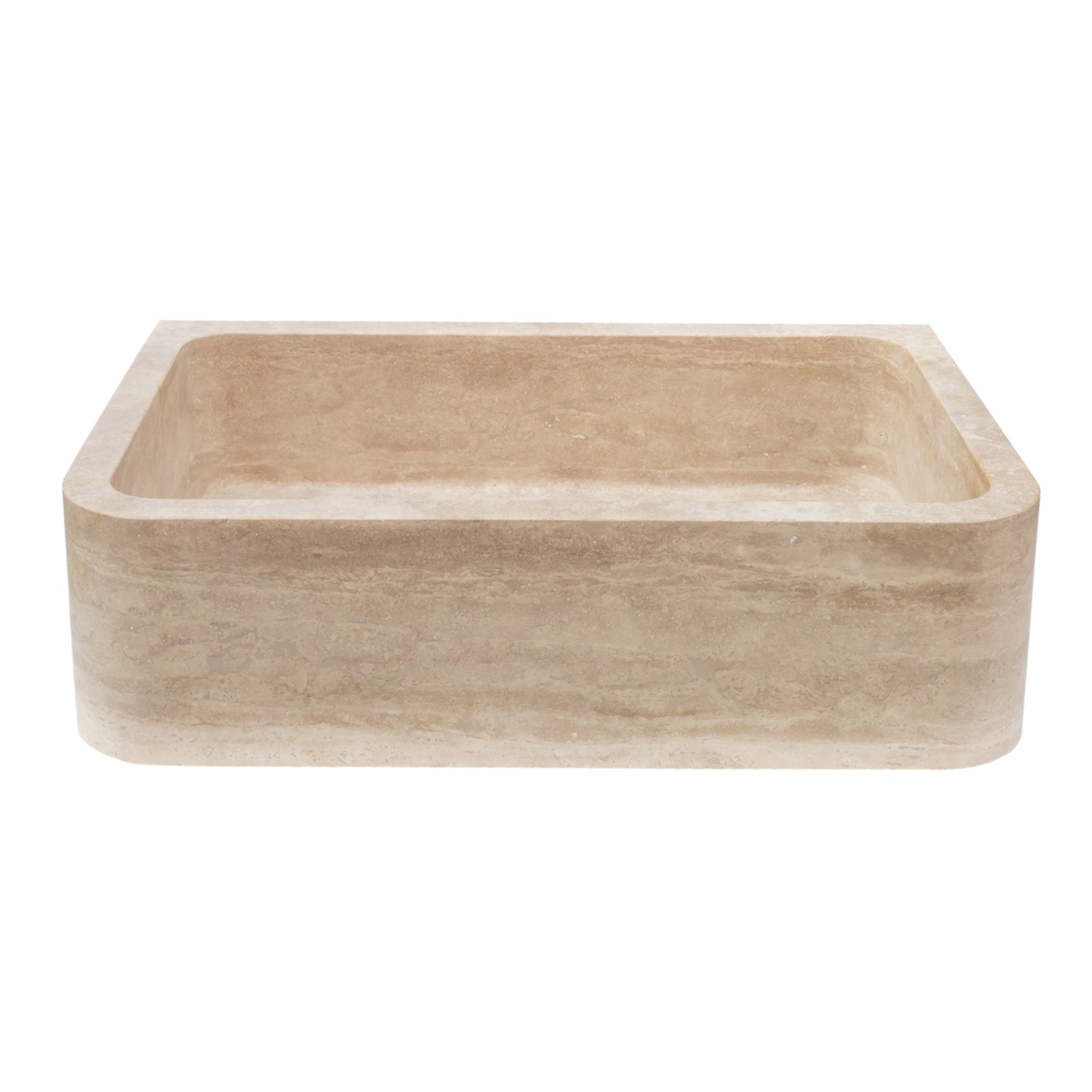The combination of smooth honed and filled interior and exterior ensures this sink will be the focal point of your kitchen decor. The breathtaking travertine from Turkey will blend into any setting. These rectangular apron sinks for the kitchen are not only convenient for everyday use, but also an ornament for your living space. The artisanal construction ensures that no two sinks will be exactly identical.