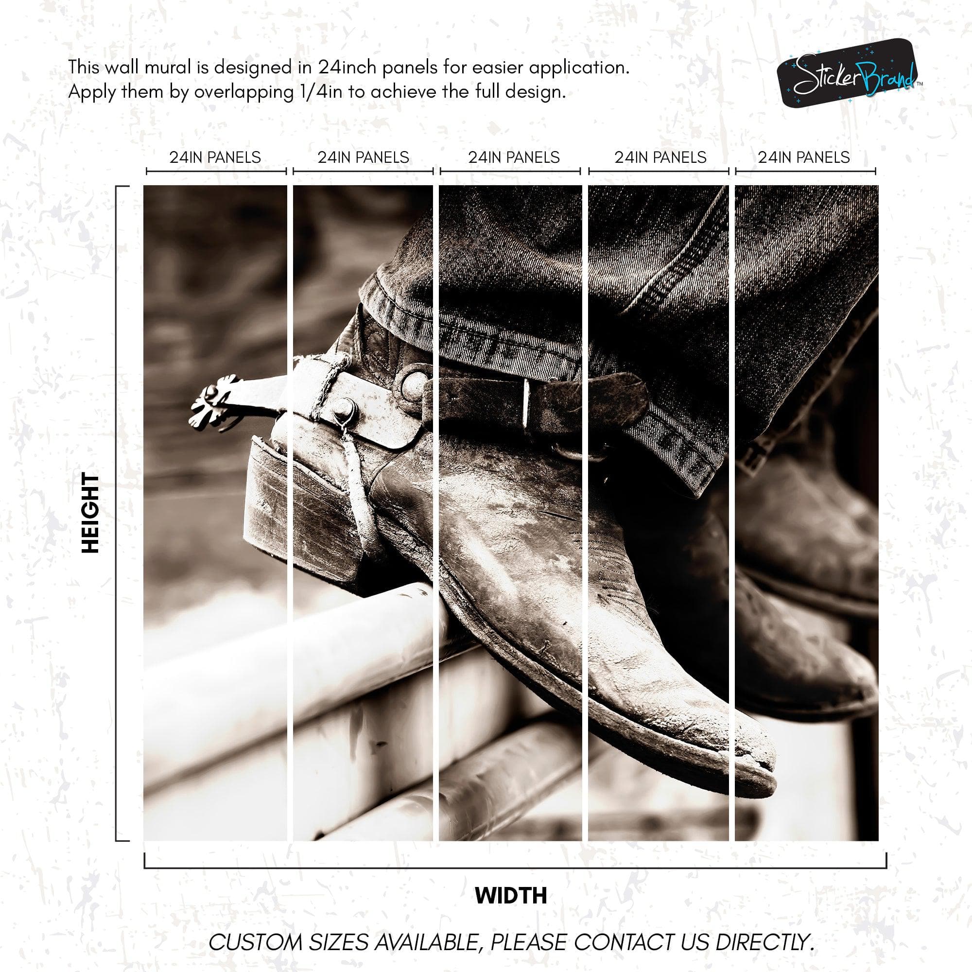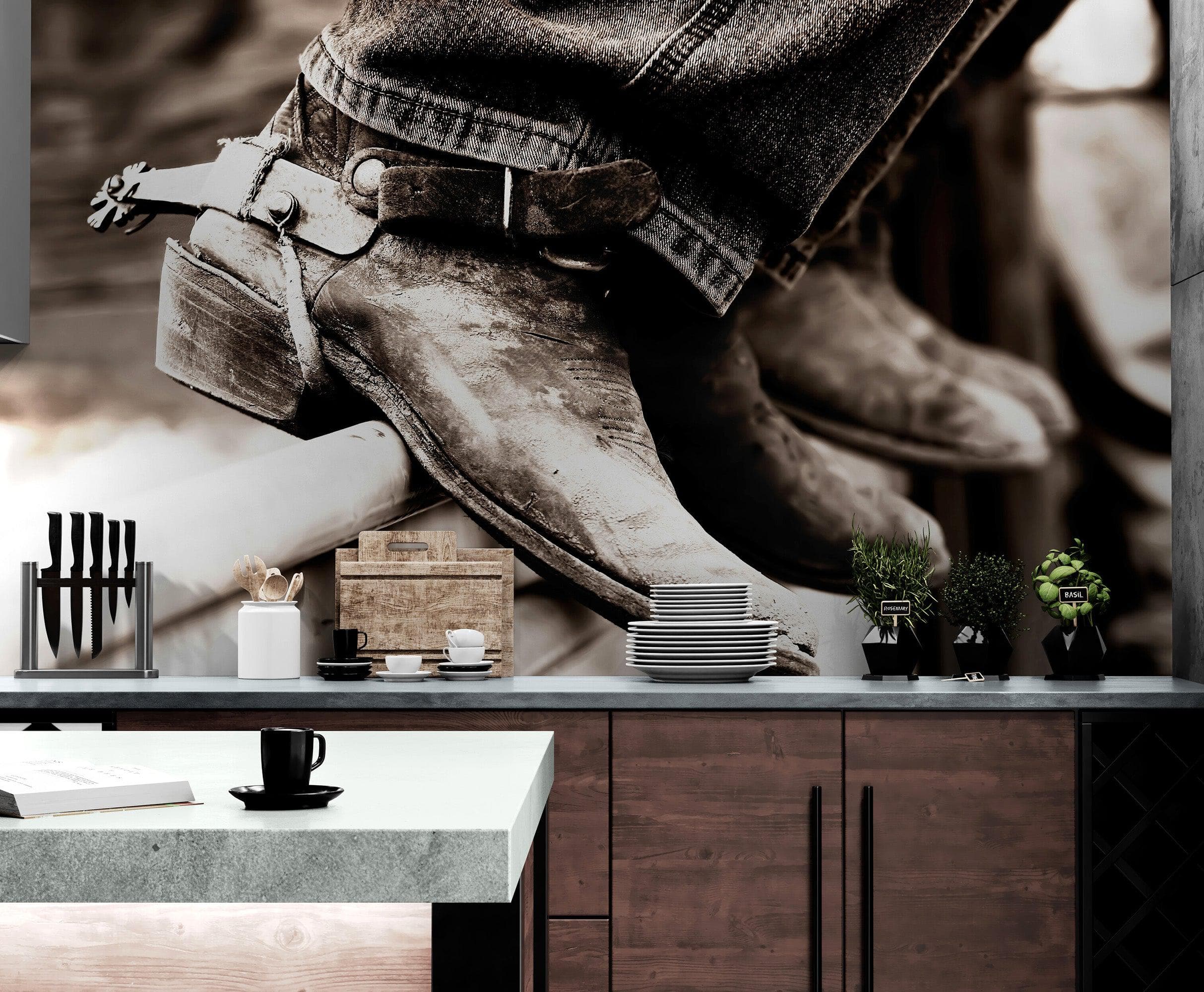 Vintage Western Theme Wallpaper. Rustic Cowboy Sepia Wall Mural. #6748