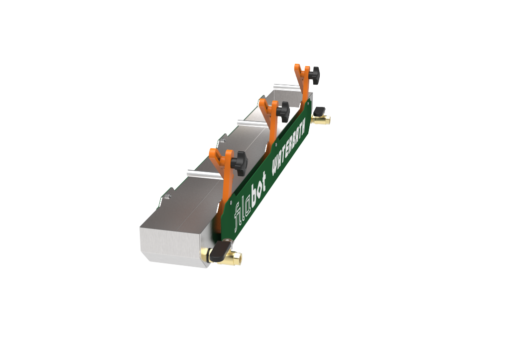 The Filabot Waterbath has three fully adjustable filament guide arms that can be set up in any position to hold the filament below the waterline. Two outlets are positioned on either end of the tank to allow for circulator pumps to be attached and to enable users to easily drain water out by connecting a hose.
