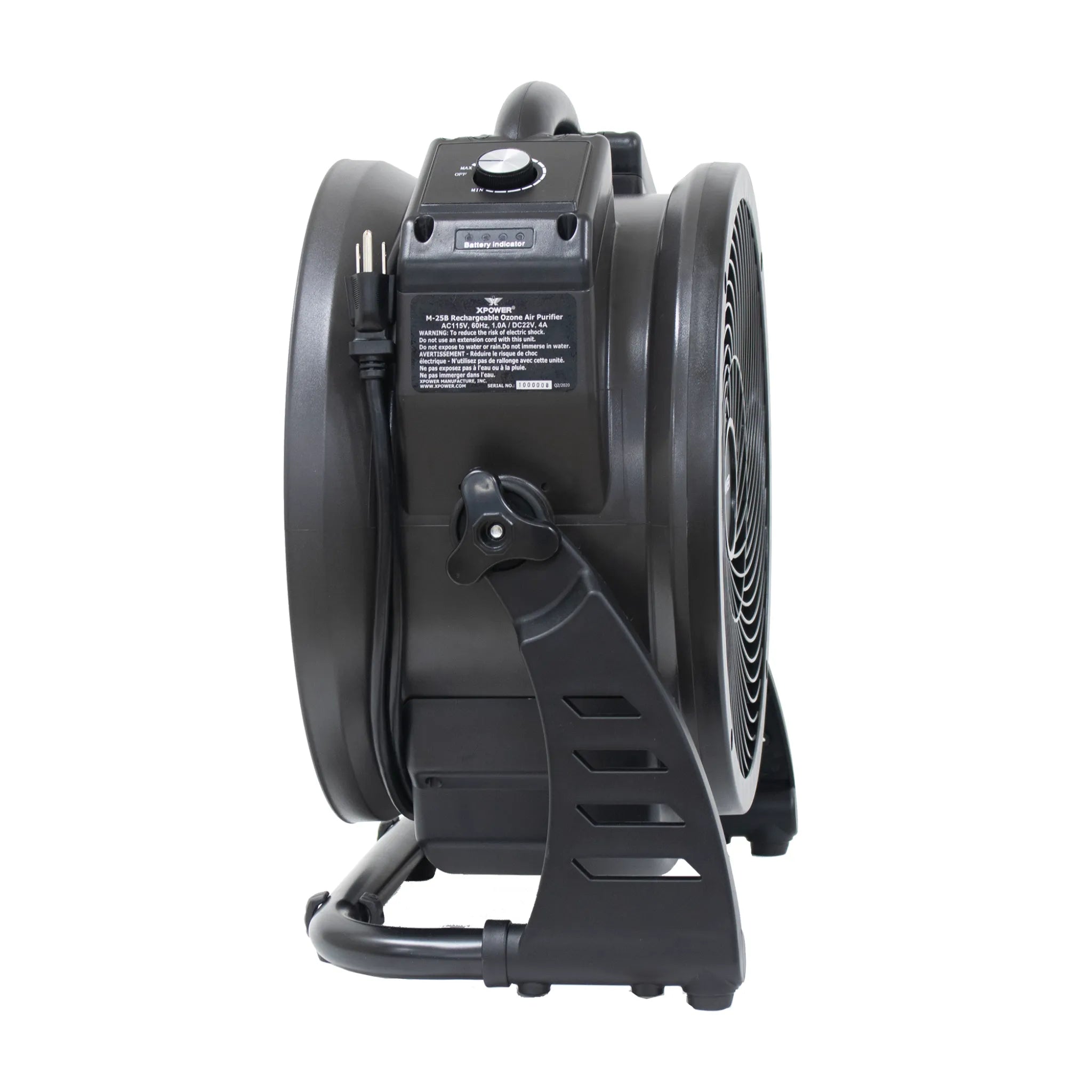 The XPOWER M-25B Cordless Rechargeable Axial Air Mover with Ozone Generator is the industry’s first truly mobile, high-performance solution for professional ozone treatment and air circulation. Combining a powerful 5000 mg/hour commercial-grade ozone generator with a high-torque brushless DC motor, this dual-function unit delivers maximum deodorizing and sanitizing performance — now with completely cordless, rechargeable functionality. With up to 24+ hours of runtime and precise control features, the M-25B is perfect for restoring air quality in unoccupied spaces such as hotel rooms, apartments, restoration sites, and more.