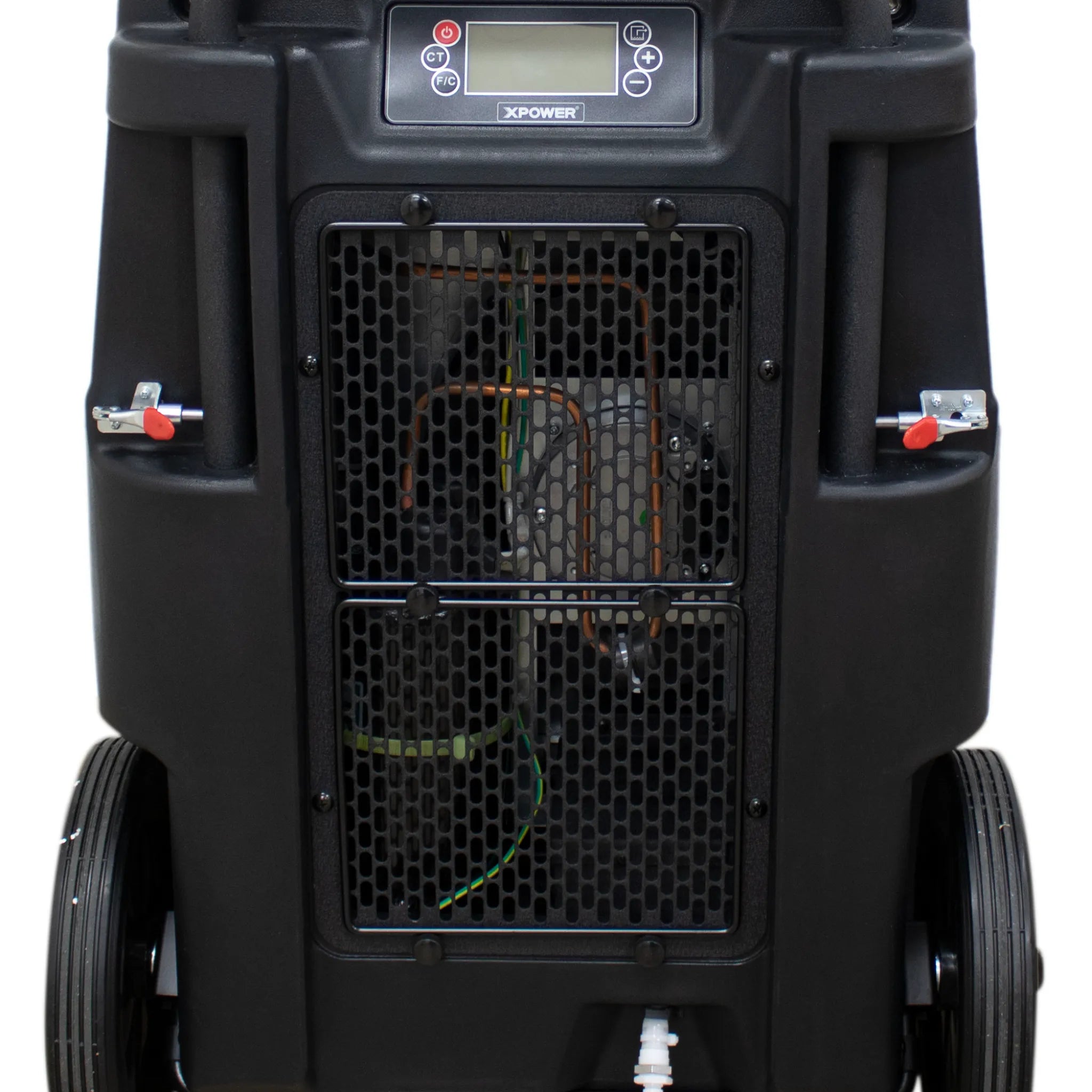 The XPOWER XD-165L Low Grain Refrigerant (LGR) Dehumidifier delivers unmatched performance for professional water damage restoration. Engineered for high-volume moisture removal, this rugged and powerful unit extracts up to 165 pints per day at AHAM conditions and up to 280 pints per day at full saturation. Featuring a low 10.2 amp draw and operating temperatures from 33°F to 105°F, it’s built to perform in extreme conditions while maintaining optimal efficiency. With auto-purge technology, dual ducting exhaust, digital monitoring, and ultra-mobile design, this is the go-to solution for restoration professionals who demand reliability and results.