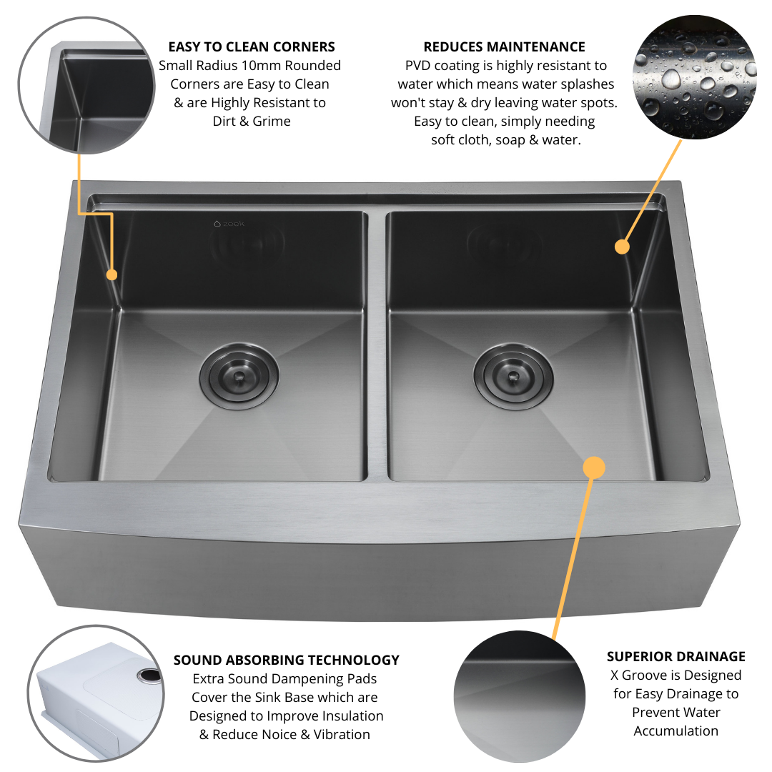3. TWO SINK GRIDS: Matching stainless steel sink grids in gunmetal finish protect the sink agains any scratches while allow you to directly place hot pots without worrying about leaving any ring marks.