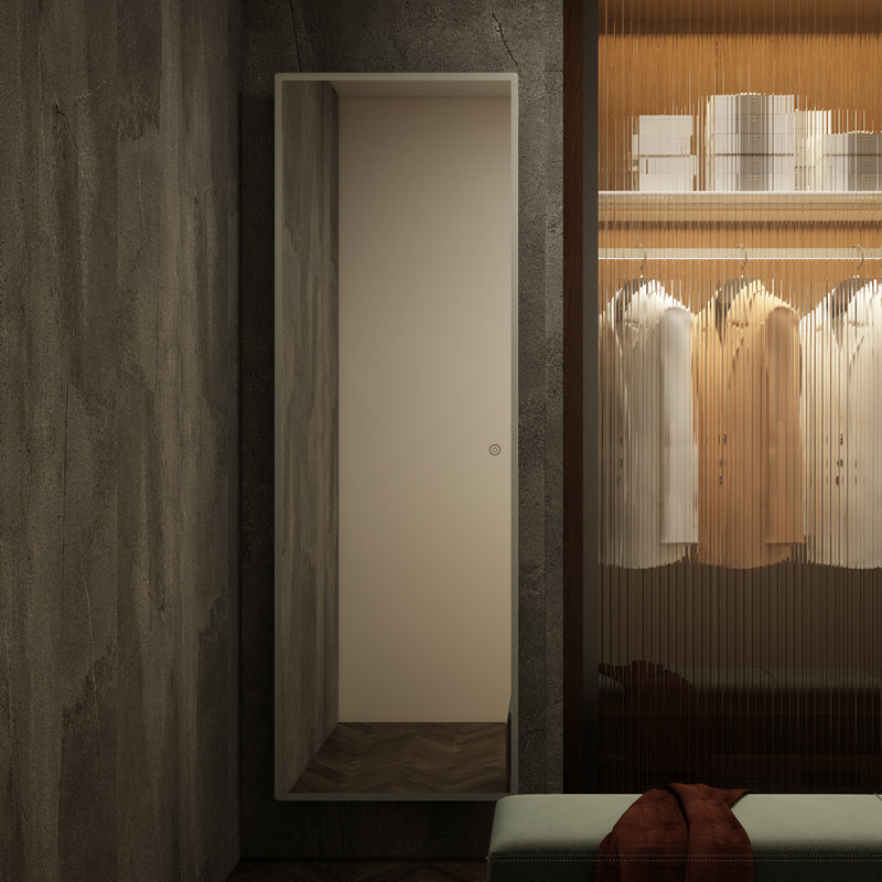 Upgrade your home with this high-quality, 65x22 inch full body LED mirror. The acrylic edge adds a modern touch to the sleek design. Easily hang it on the wall horizontally or vertically, or stand it on the floor against the wall for added versatility. This long, lighted mirror is perfect for use in a bedroom, hallway, or dressing room. The LED lights provide additional illumination and make it easy to get ready in the morning or before a night out. Don't miss out on the opportunity to elevate your home's style and functionality with this must-have mirror.